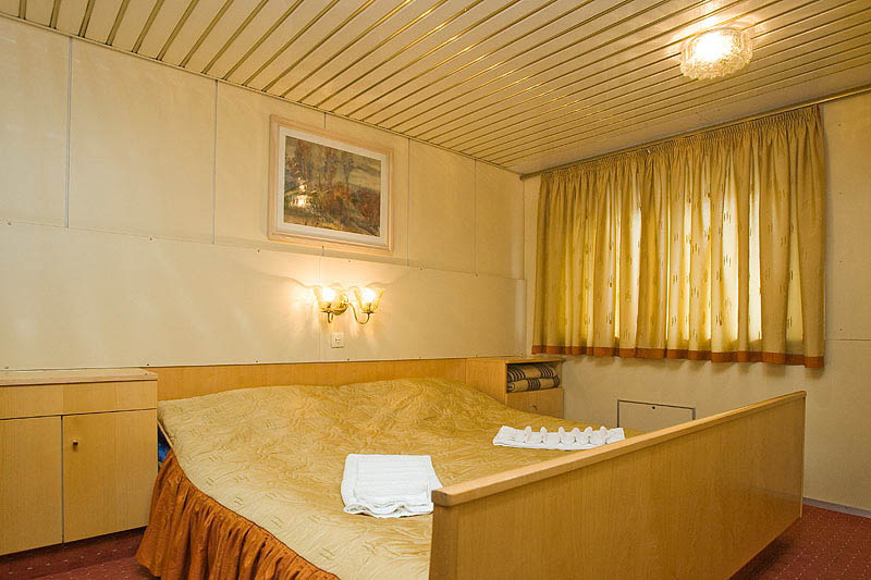 Двухместная каюта увеличенной площади, расположенная на средней палубе. В каюте: двуспальная кровать (или две односпальных по желанию клиента), раздвижной диван с возможностью раскладки, холодильник, телевизор, санблок, кондиционер, фен, электророзетка 220В. Каюты №: 1, 3, 5.