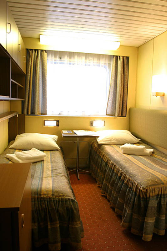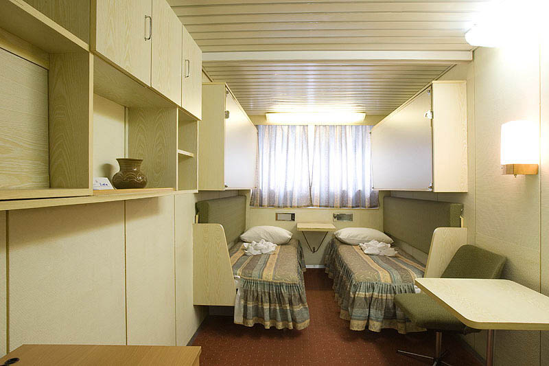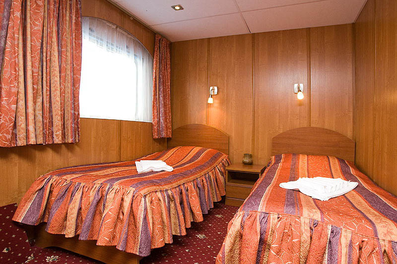 Двухместная одноярусная каюта со всеми удобствами на средней палубе. В каюте: санблок (душ, умывальник, туалет), кондиционер, телевизор, холодильник, фен, электророзетка 220В. Каюты №: 313-316, 333-336.