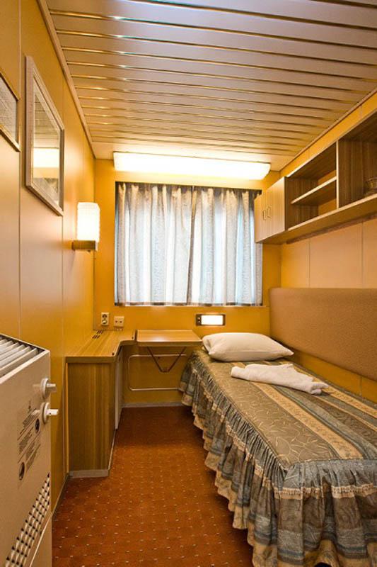 Одноместная каюта со всеми удобствами на шлюпочной палубе. В каюте: санблок (душ, умывальник, туалет), кондиционер, телевизор, холодильник, фен, электророзетка 220В. Каюты №: 437-445.
