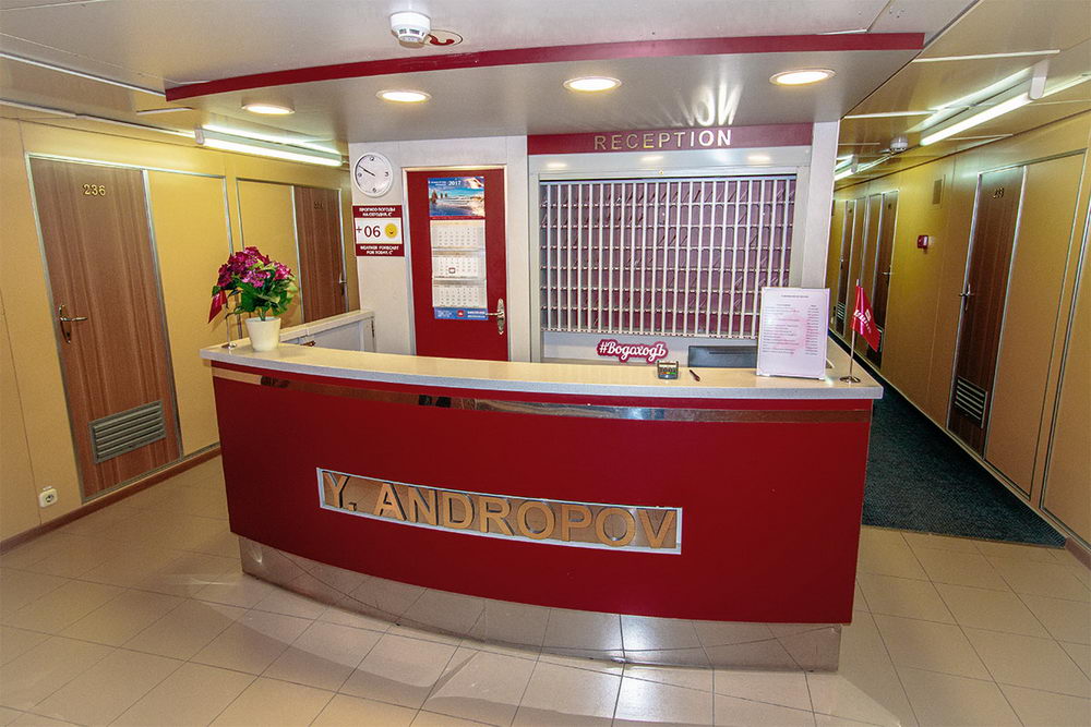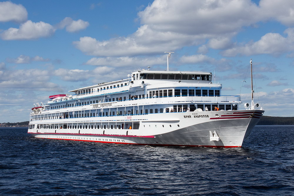 Комфортабельный четырехпалубный теплоход «Юрий Андропов» проекта 302, построен в 1986 году в Германии.