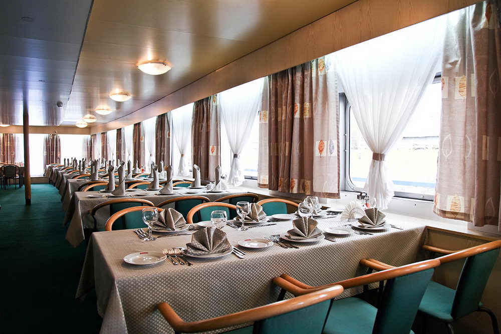 • обед и ужин — «шведский стол», фиксированная рассадка в двух салонах;