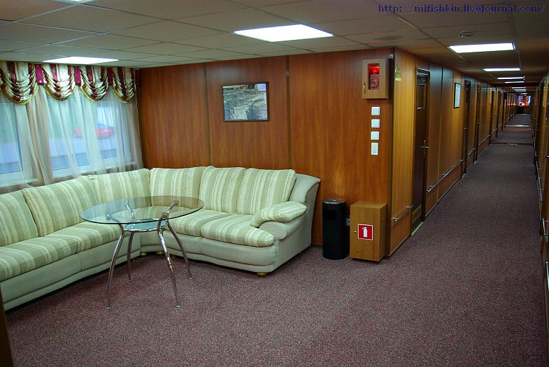 Также к услугам туристов в каютах: косметика, туалетные принадлежности, щетка для одежды, банные халаты, маски для сна, тапочки, набор посуды и столовых приборов, чайная пара, питьевая вода и «приветственный набор» (игристый напиток, фрукты), кофе/чай, мини-бар (за дополнительную плату), капсульная кофемашина Bosch Tassimo (первая чашка кофе в подарок).
