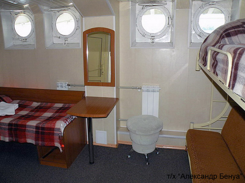 Каюты 401, 413, 414 – двухместная каюта увеличенной площади с 1 дополнительным местом, со всеми удобствами (раковина, душевая кабина, туалет, кондиционер) расположенная на шлюпочной палубе. Площадь каюты 14.2 кв.м. В каюте: двуспальная кровать (при необходимости трансформируется в две односпальные кровати) и кресло-кровать (1 спальное место), шкаф, прикроватные тумбы, кресло, туалетный стол, настенная вешалка для одежды, телевизор с кабельным и спутниковым вещанием, холодильник, сейф, телефон внутренней связи, розетки 220V, фен, плед для каждого туриста, обзорное окно, персональный балкон с мебелью для отдыха.