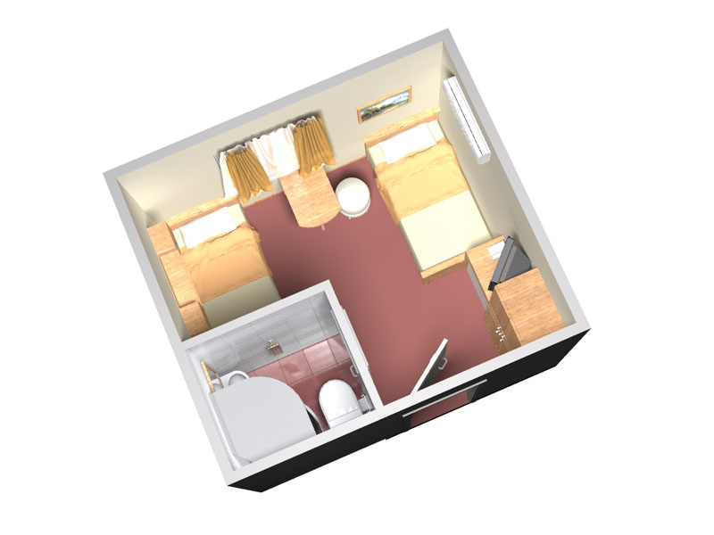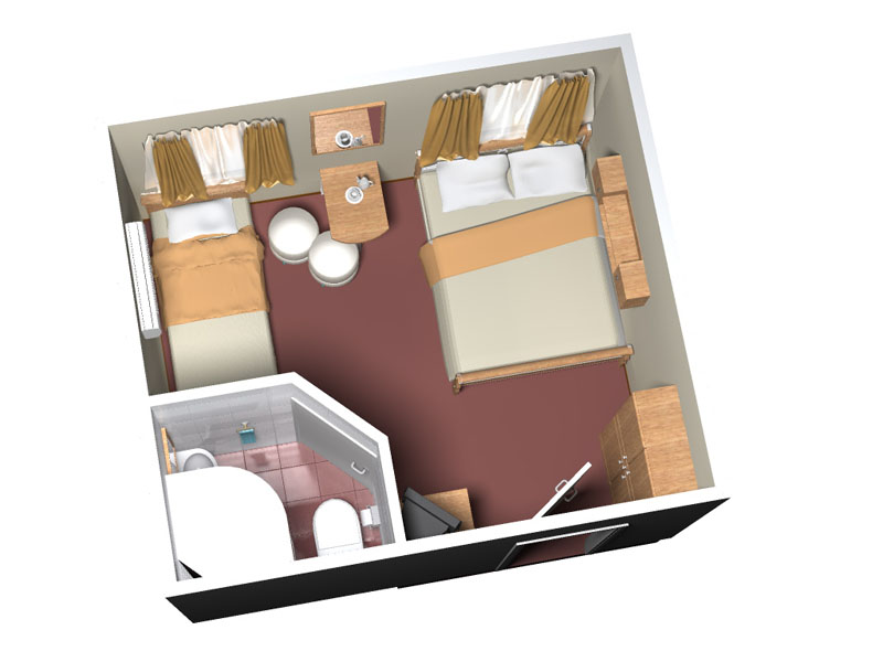 Каюты 411, 412 – двухместная каюта увеличенной площади с двумя дополнительными местами, со всеми удобствами (раковина, душевая кабина, туалет, кондиционер) расположенная на шлюпочной палубе. Площадь каюты 15.3 кв.м. В каюте: двуспальная кровать (при необходимости трансформируется в две односпальные кровати) и двуспальный диван (2 дополнительных спальных места), шкаф, прикроватные тумбы, кресло, журнальный стол, настенная вешалка для одежды, телевизор с кабельным и спутниковым вещанием, холодильник, сейф, телефон внутренней связи, розетки 220V, фен, плед для каждого туриста, обзорное окно, персональный балкон с мебелью для отдыха.