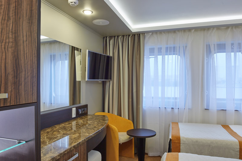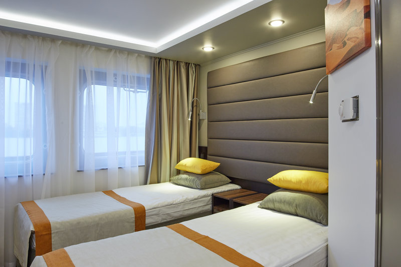 Двухместная каюта увеличенной площади, расположенная в кормовой части средней палубы. В каюте: две односпальные кровати (в каютах № 304, 306 кровати стоят вместе), душевая кабина, телевизор, кондиционер, холодильник, внутренняя телефонная связь, ROOM-сервис. Каюты № 302 и 304 удобны для семейного путешествия или круиза компании друзей: в перегородке между этими каютами есть дверь, запираемая администратором на ключ при продаже этих кают по отдельности, и открытая, если вы приобретаете эти две смежные каюты. Каюты №: 302, 304, 306, 308.
