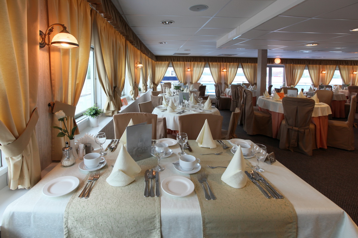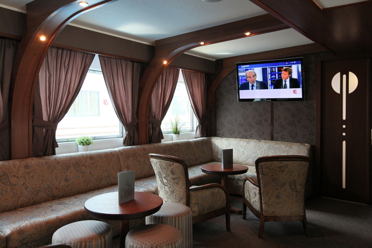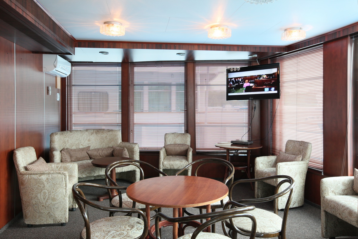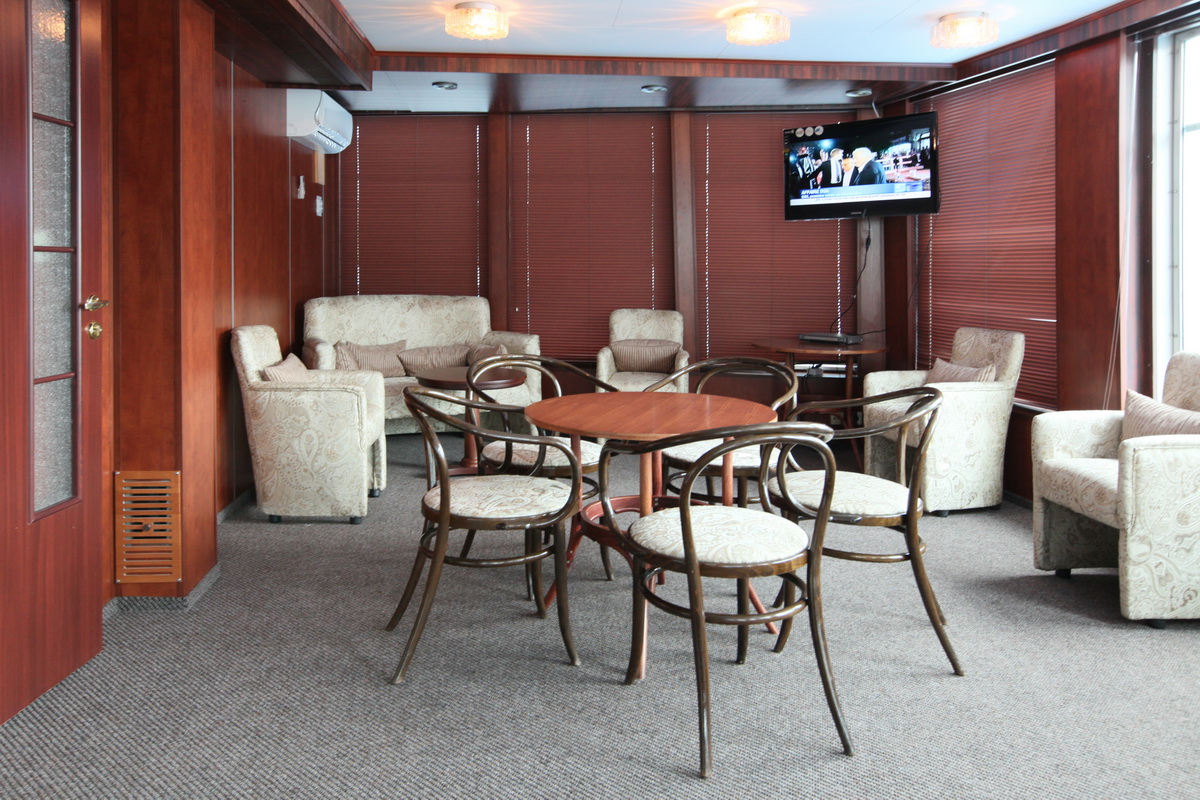 Теплоход полностью отвечает критериям комфорта самых требовательных гостей: огромный ресторан с панорамным видом, два оригинально декорированных бара, удобный конференц-зал, минималистский дизайн интерьера, увеличение пространства, снижение пассажировместимости (207 человек вместо 260), сувенирный магазин, прачечная и кабинет доктора. Каждая каюта оборудована панорамным открывающимся окном, двумя одноуровневыми кровати, телевизором с плоским экраном, феном, сейфом, платяным шкафом.