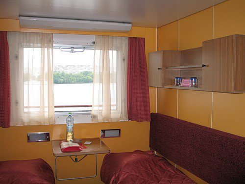 Двухместная каюта со всеми удобствами, расположеная на шлюпочной палубе. В каюте: две кровати, телевизор, холодильник, душевая кабина, туалет, раковина, кондиционер, розетка 220V, радио, шкаф для одежды. Каюты №: 411-416.