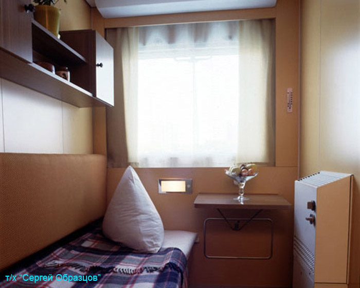 Во всех каютах имеется санблок (душ,туалет),розетки,кондиционер,радио, шкаф для одежды.