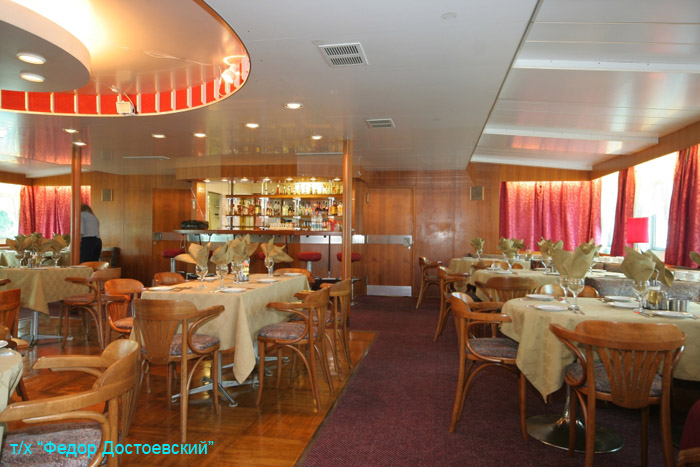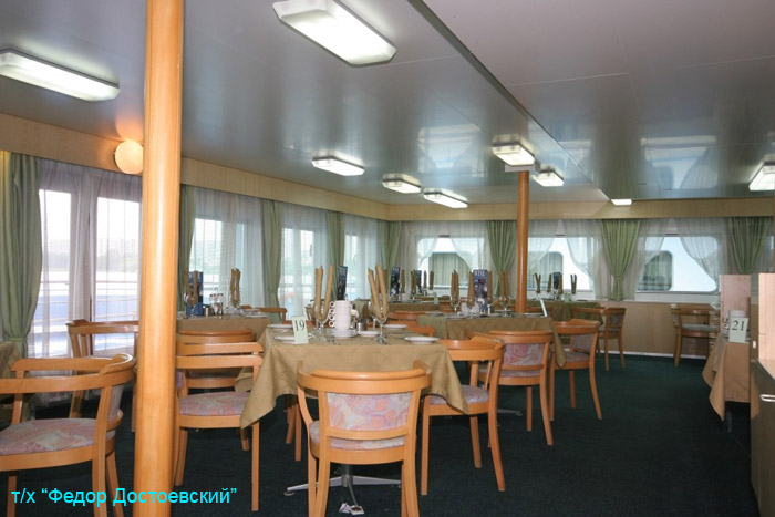 Теплоход «Фёдор Достоевский» (проект 301 м) имеет каюты категории «Люкс», комфортабельные 1-но, 2-х и 3-х местные каюты со всеми удобствами. К Вашим услугам: на теплоходе для Вас работают: на средней и шлюпочной палубе, на корме, два комфортабельных ресторана.