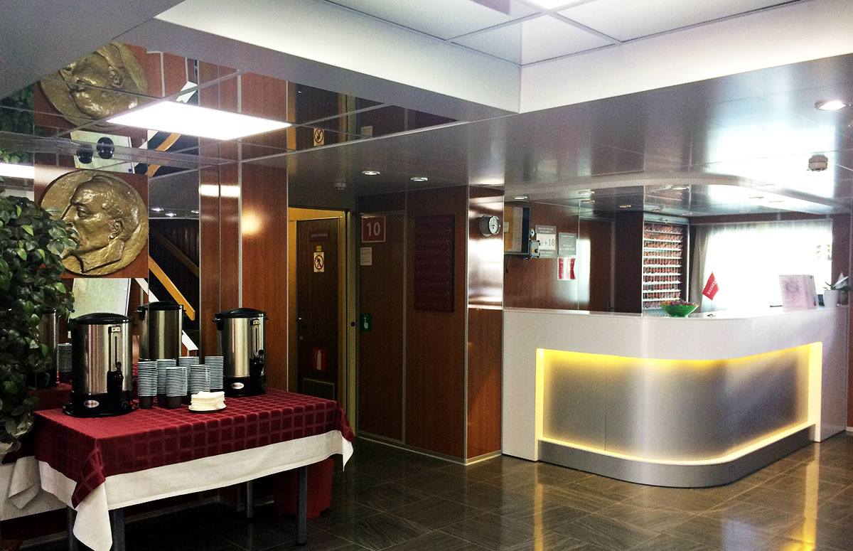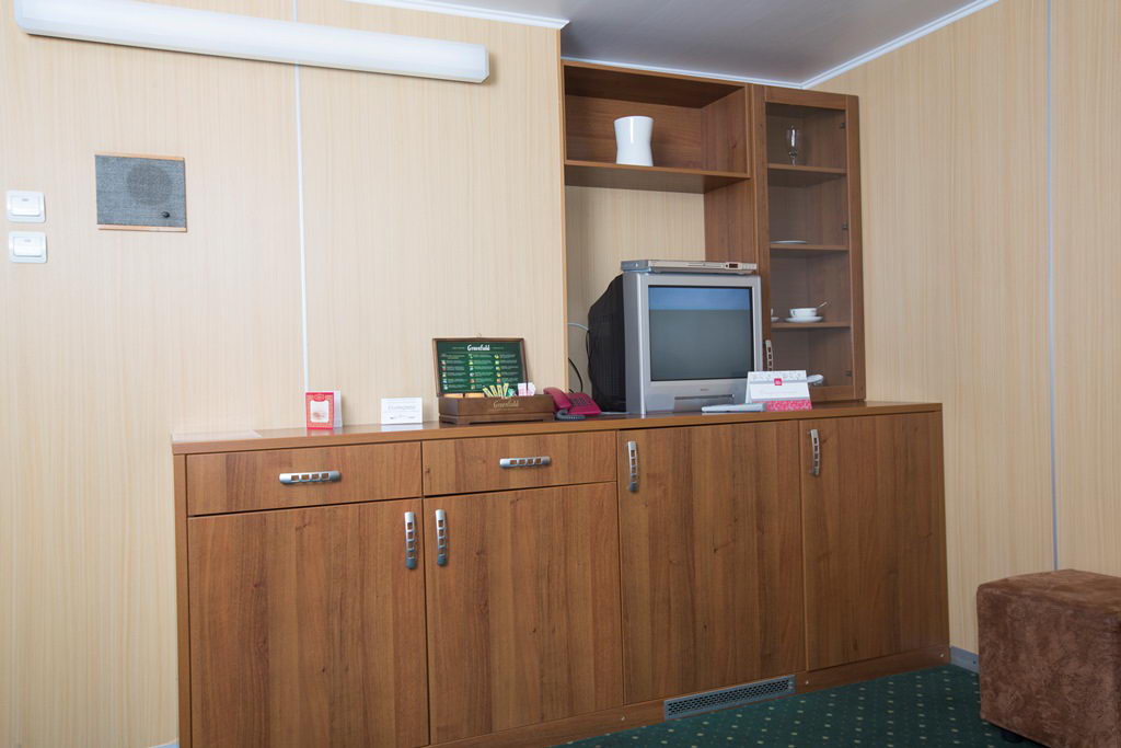 • холодильники в четырехместных каютах и в каютах класса «Люкс»; телевизоры в каютах класса «Люкс»;