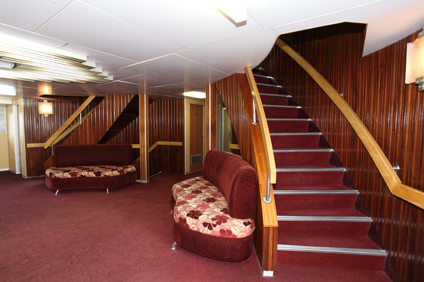Во всех каютах: шкаф для одежды, радио, кондиционер, душ, санузел, обзорное окно.
