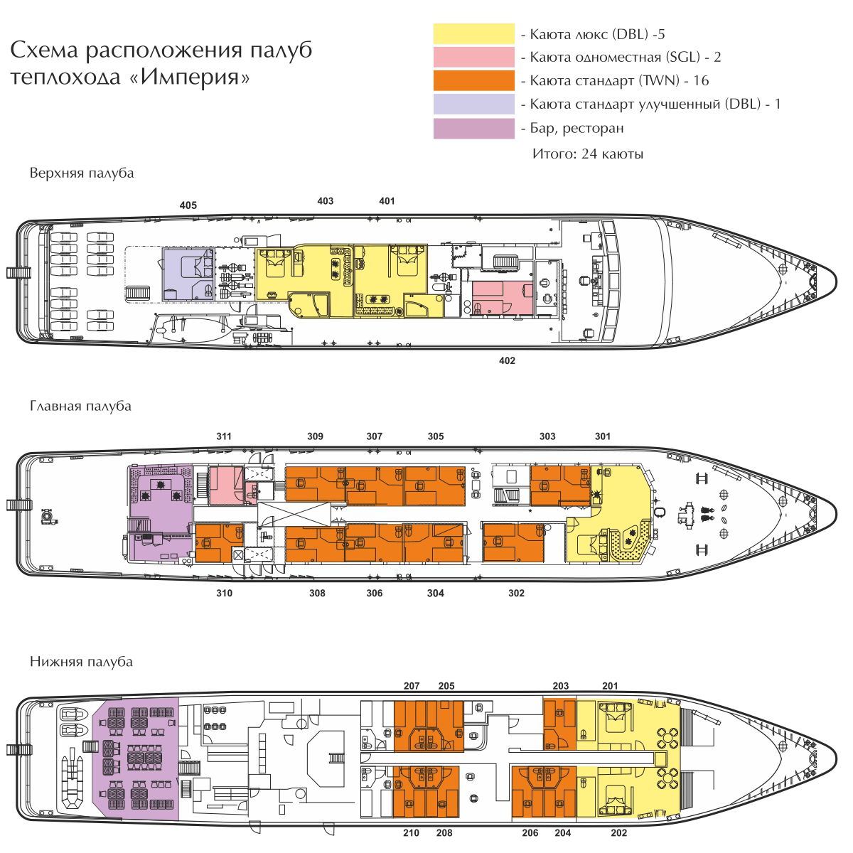 • количество кают: 24.