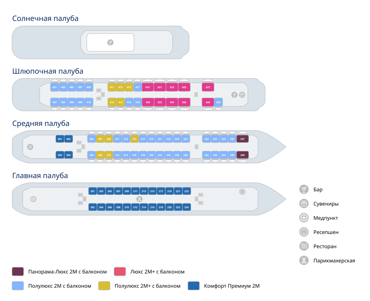 Панорамный люкс 2М+ с балконом (средняя палуба)