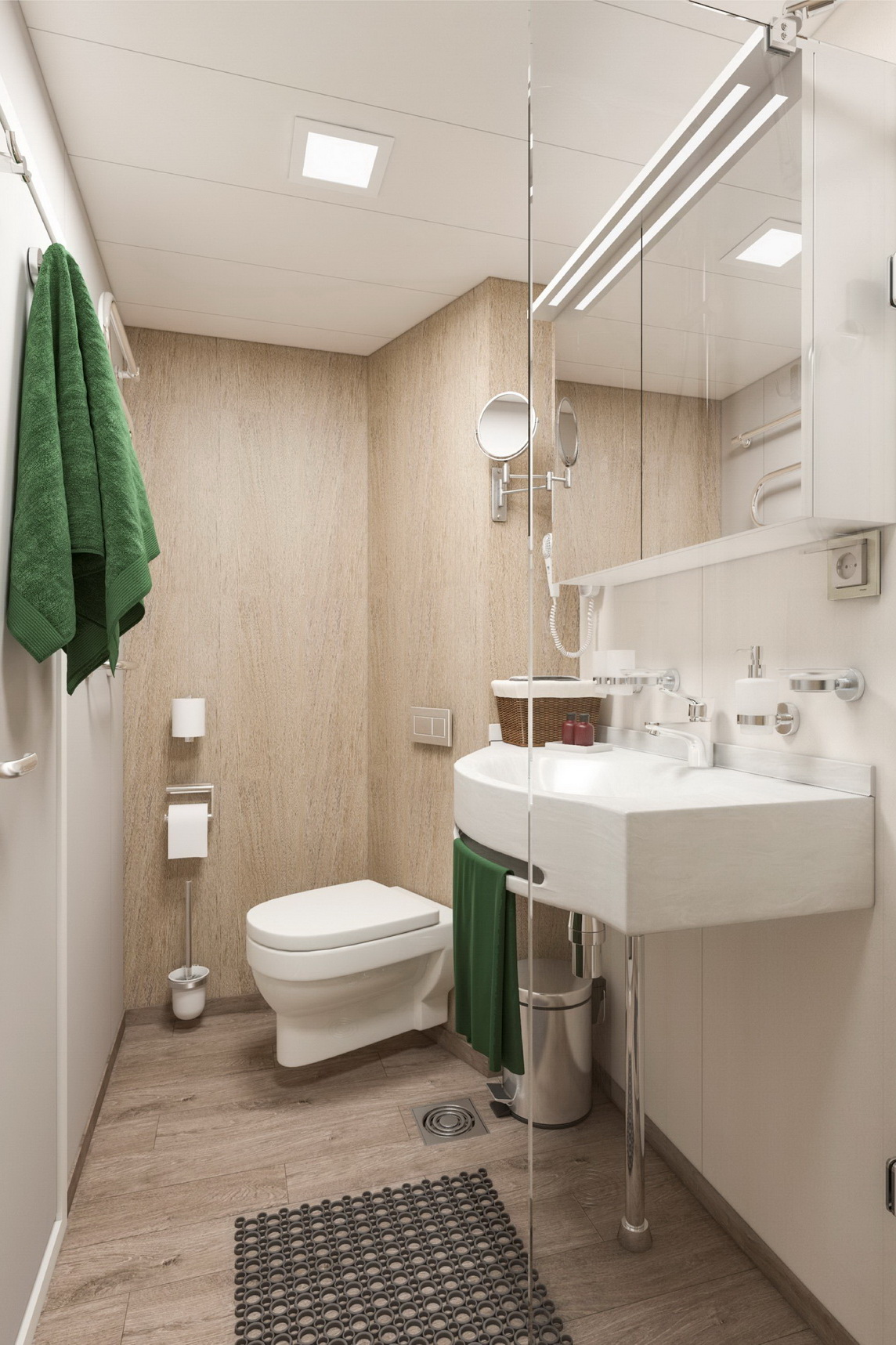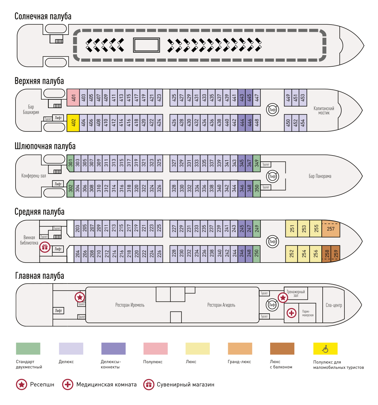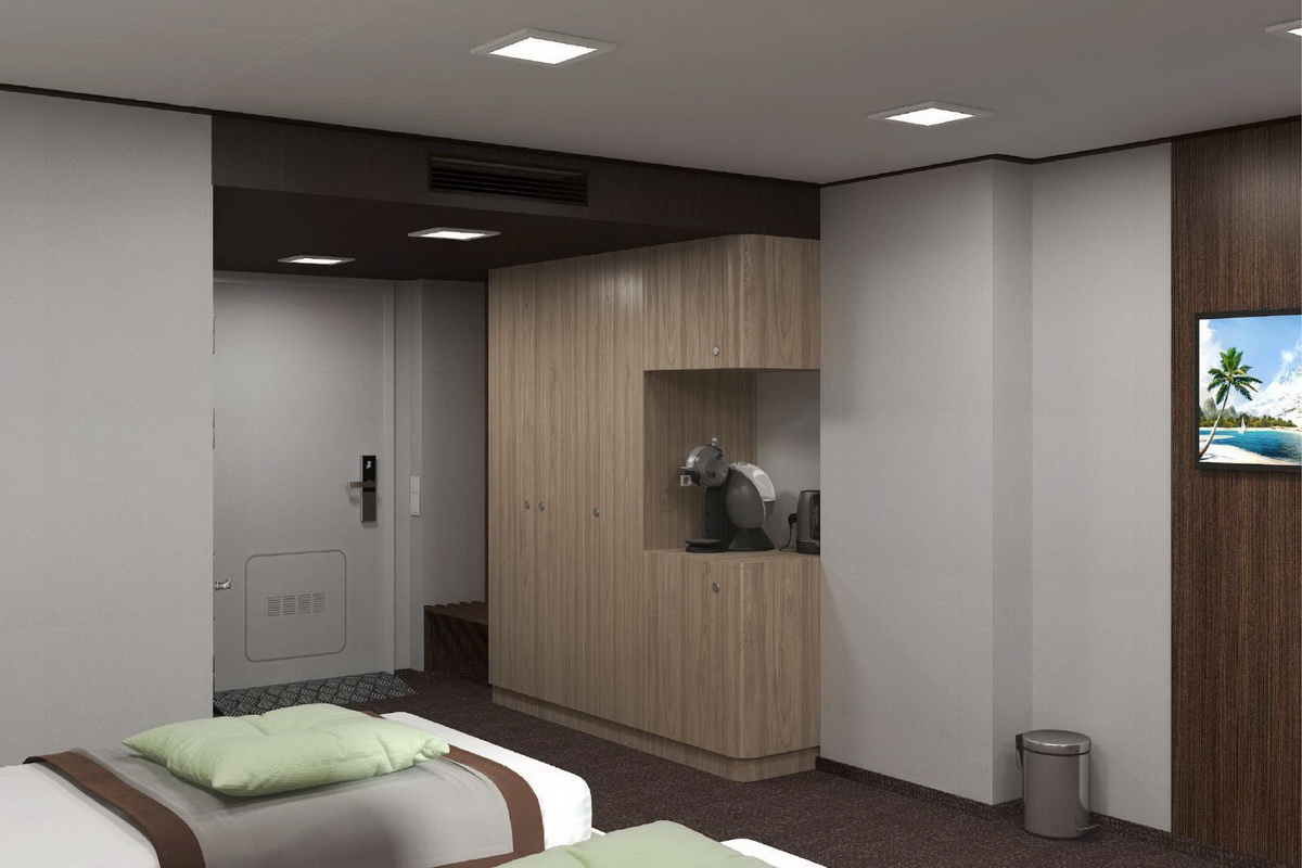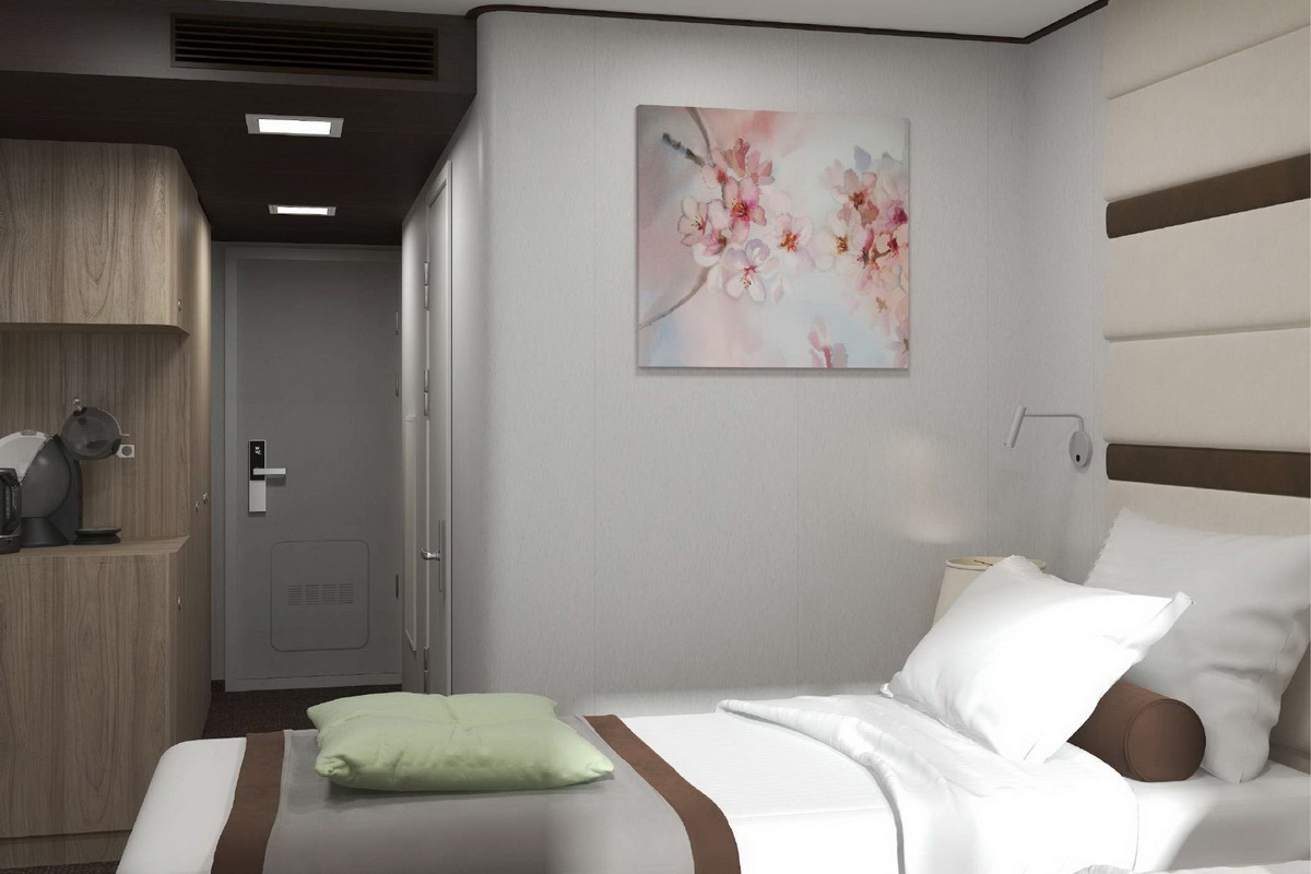 • 2 каюты класса "Полулюкс" (1 каюта оборудована для маломобильных пассажиров)