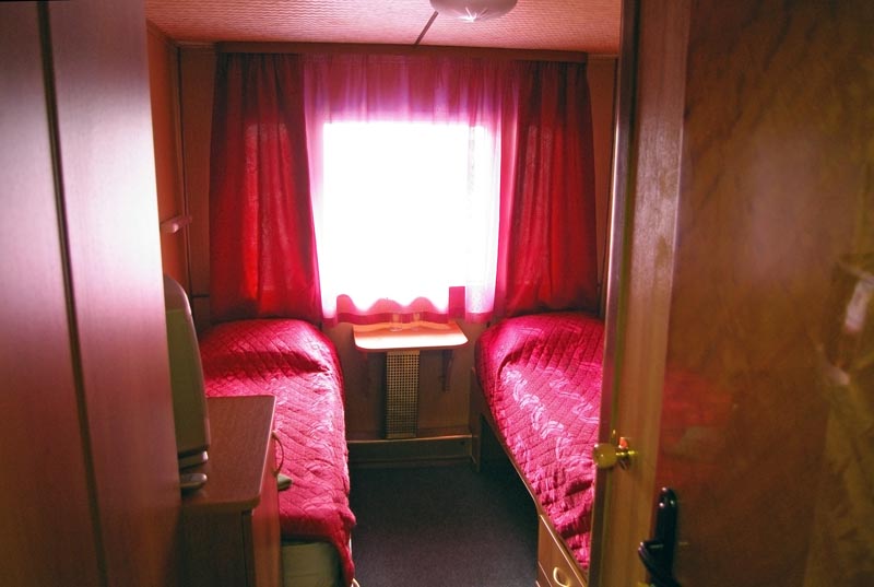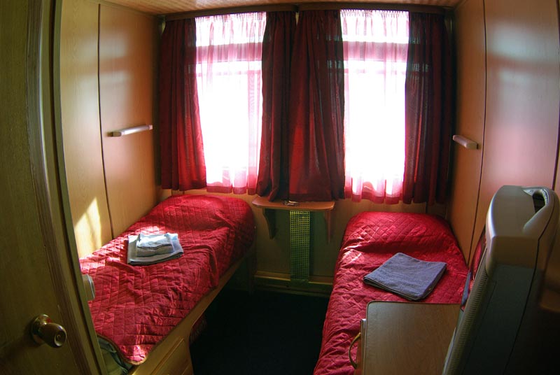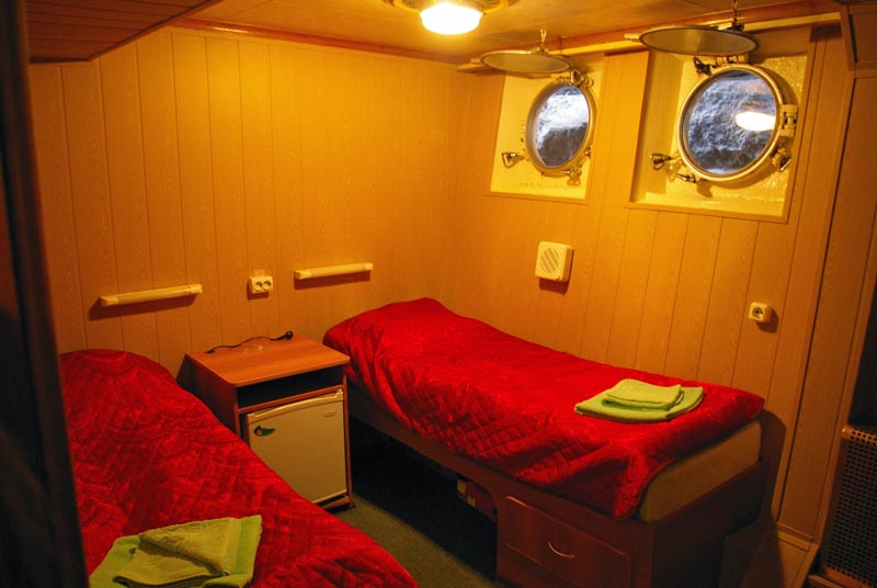 Двухместная одноярусная каюта на главной палубе. Однокомнатная каюта с удобствами (душ, санузел, общая система вентиляции) рассчитана на размещение двух человек. В каюте две односпальные кровати, шкаф для одежды, телевизор, холодильник, радио, электророзетка на 220V, электророзетка на 220V, обзорное окно. Каюты №: 206, 208-213, 215.