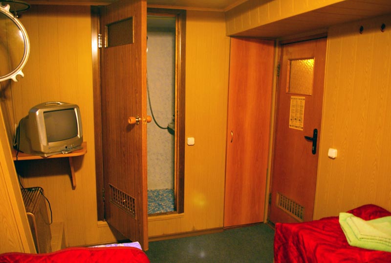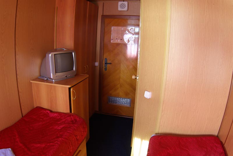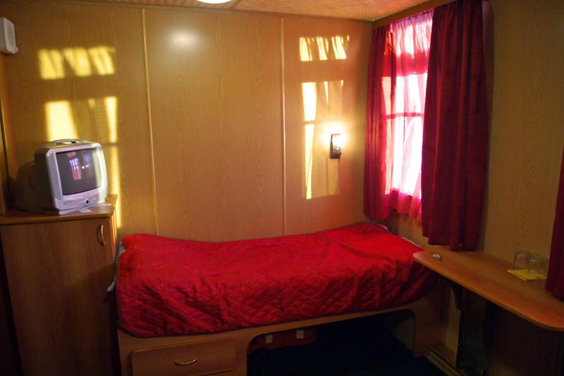 Одноместная каюта на шлюпочной палубе с удобствами (душ, санузел, кондиционер). В каюте: односпальная кровать, шкаф для одежды, столик, холодильник, телевизор, электророзетка на 220V, обзорное окно. Каюта № 403.