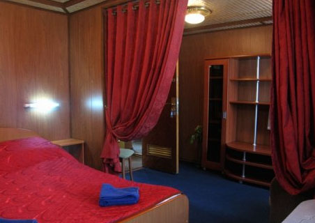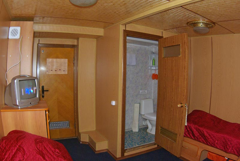 Двухместная одноярусная каюта на нижней палубе увеличенной площади с удобствами (душ, санузел, общая система вентиляции). В каюте: две односпальных кровати, шкаф для одежды, столик, холодильник, телевизор, электророзетка на 220V, иллюминаторы. Каюты №: 101-112.