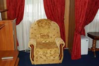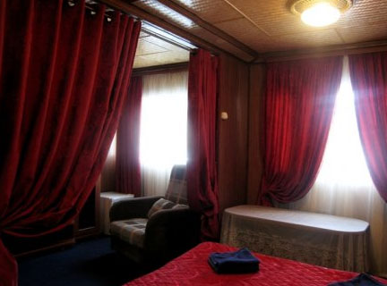Каюта класса Люкс на шлюпочной палубе. Двухместная каюта увеличенной площади с удобствами (санузел, холодильник, индивидуальный кондиционер). В каюте: двуспальная кровать, кресло-кровать, шкаф для одежды, комод, телевизор, фен, радио, 2 обзорных окна, электророзетка 220V. Возможно размещение 3-го человека на дополнительном месте (кресло-кровать). Каюты №: 401, 402.