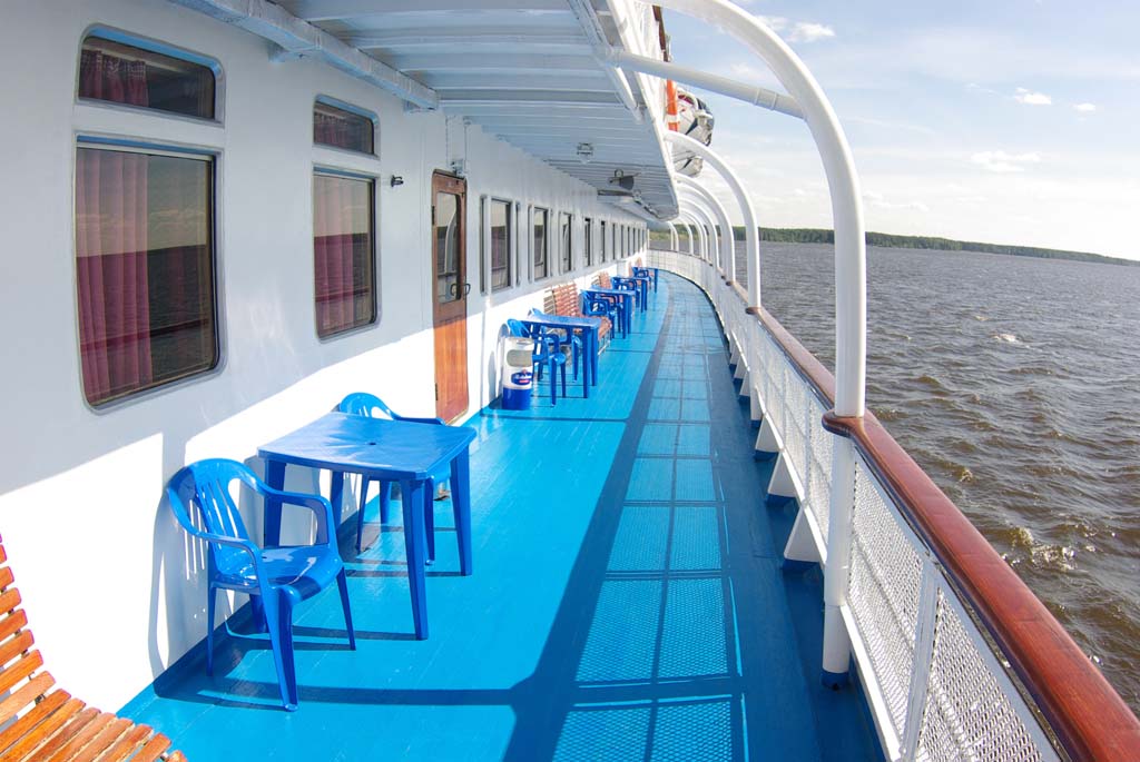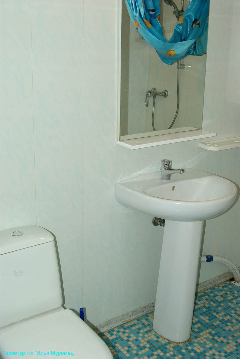 В каждой каюте: душ, туалет, телевизор (со спутниковой системой), холодильник, центральная система вентиляции (или кондиционер), розетка 220V, обзорное окно (в каютах на нижней палубе – иллюминаторы).