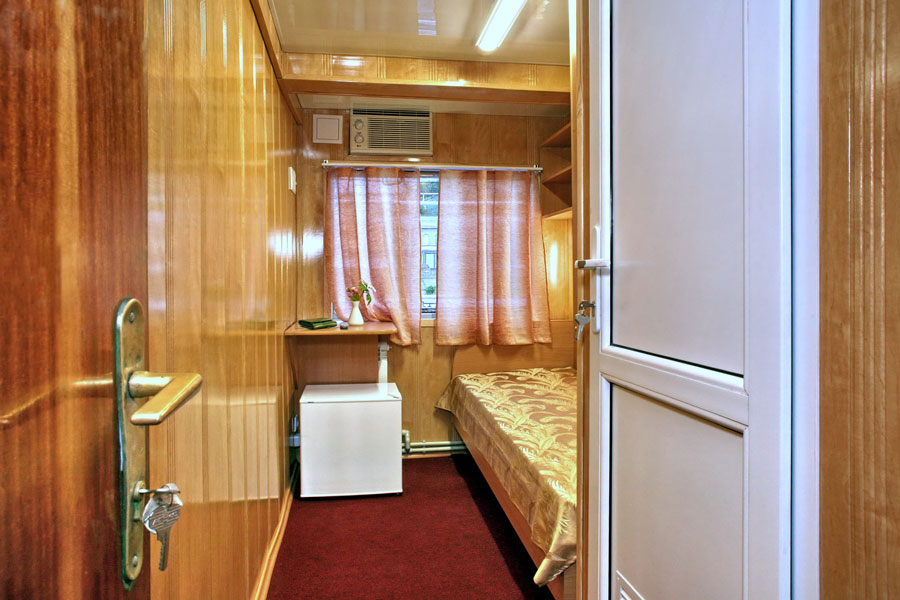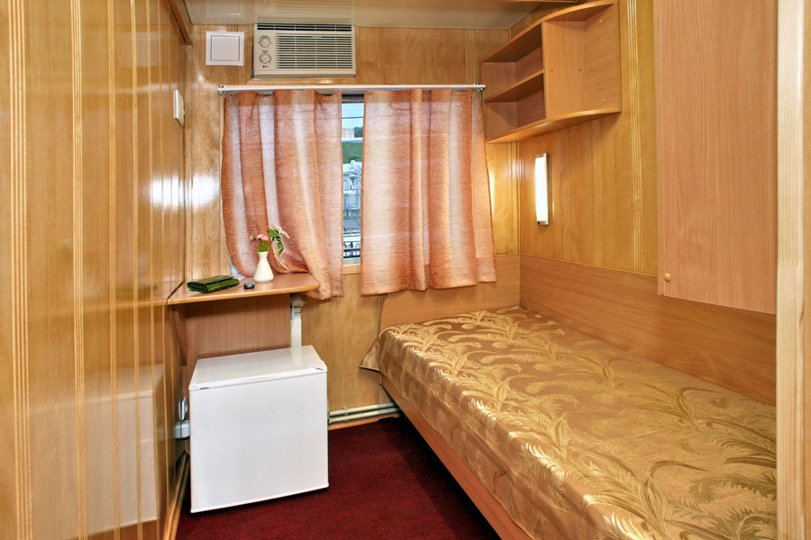 Одноместная каюта с удобствами на шлюпочной палубе. В каюте: санузел (душ, умывальник, туалет), абсорбционный мини-холодильник, кондиционер, навесной евро-шкаф, радио. Каюты №: 306, 308-314, 316, 318, 320, 322.