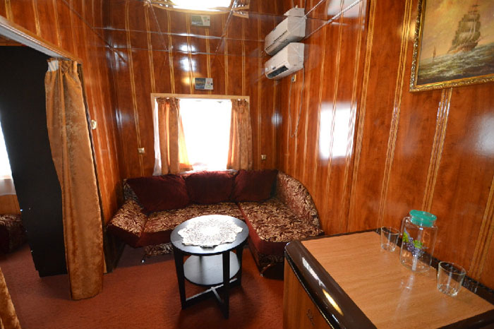 Двухместная двухкомнатная каюта с удобствами, на шлюпочной палубе. В каюте: душевая кабина, санузел, TV видео-двойка, абсорбционный мини-холодильник, кондиционер, угловой диван, шкаф для одежды, радио. Каюты №: 301, 302.