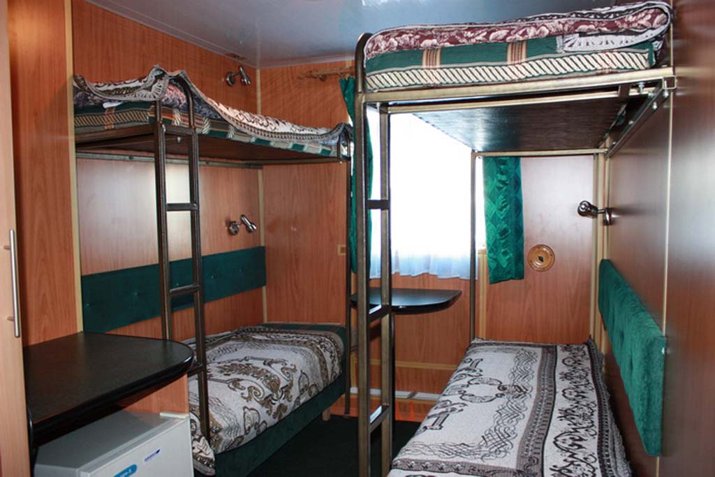 Двухместная каюта увеличенной площади с двумя основными и двумя дополнительными местами, рассчитана для размещения до 4-х человек, повышенной площади, со всеми удобствами (умывальник, душ, туалет). В каютах № 001, 002, 007, 008, 013, 014: раскладной двуспальный диван, односпальный диван нижнего расположения, полка верхнего расположения, шкаф, стол, холодильник, телевизор, фен. В каютах № 003, 004, 009, 010, 011, 012: два односпальных дивана нижнего расположения, две полки верхнего расположения, шкаф, стол, холодильник, телевизор, фен, 4 иллюминатора.