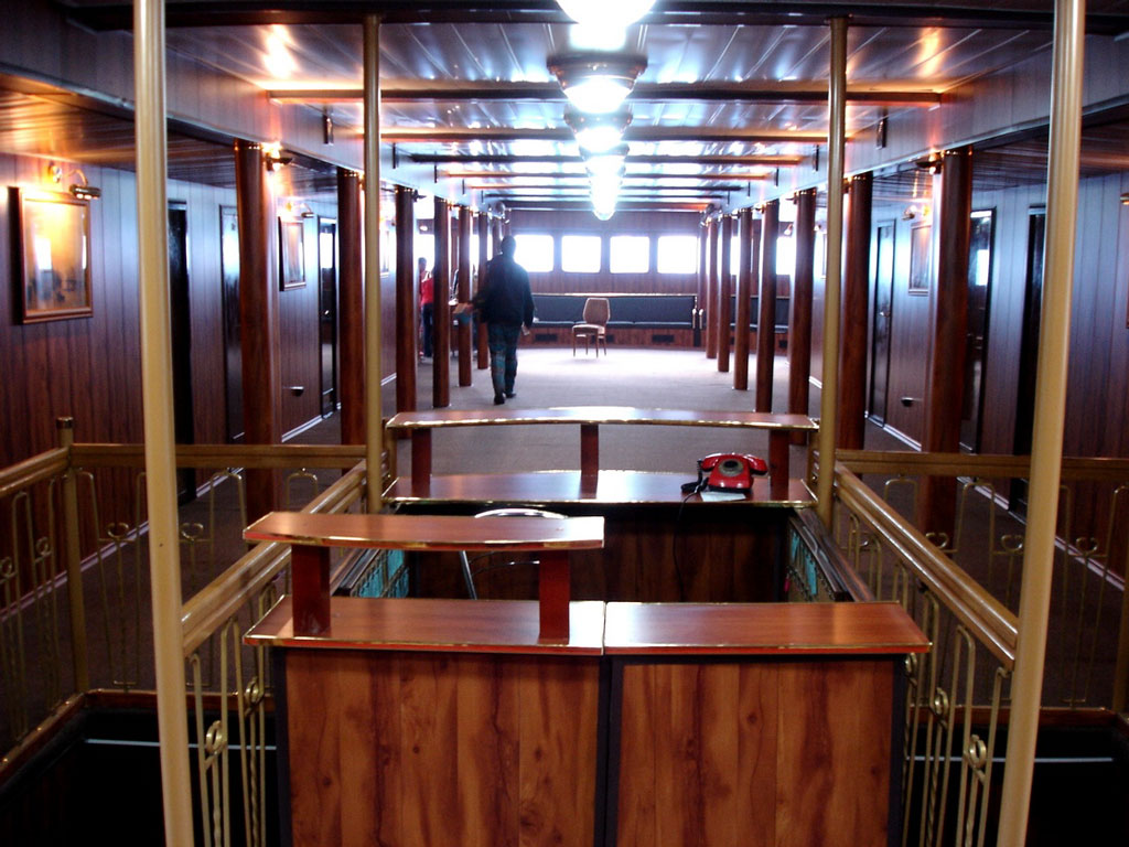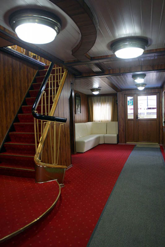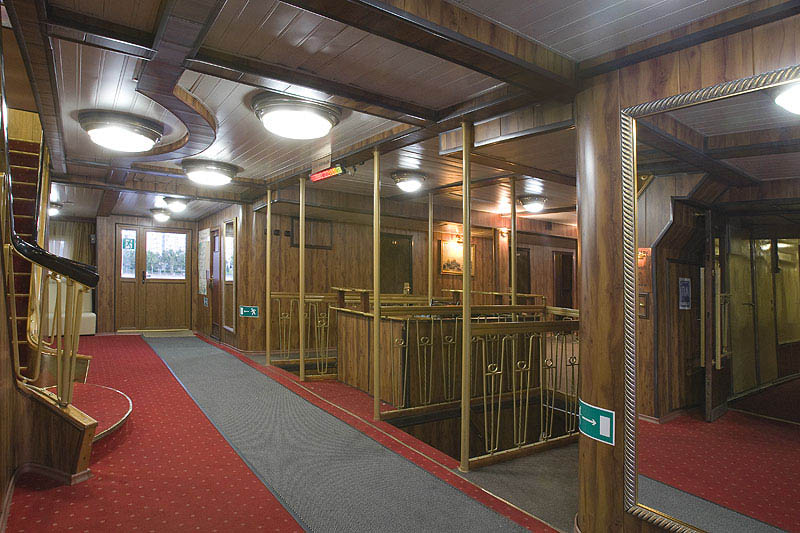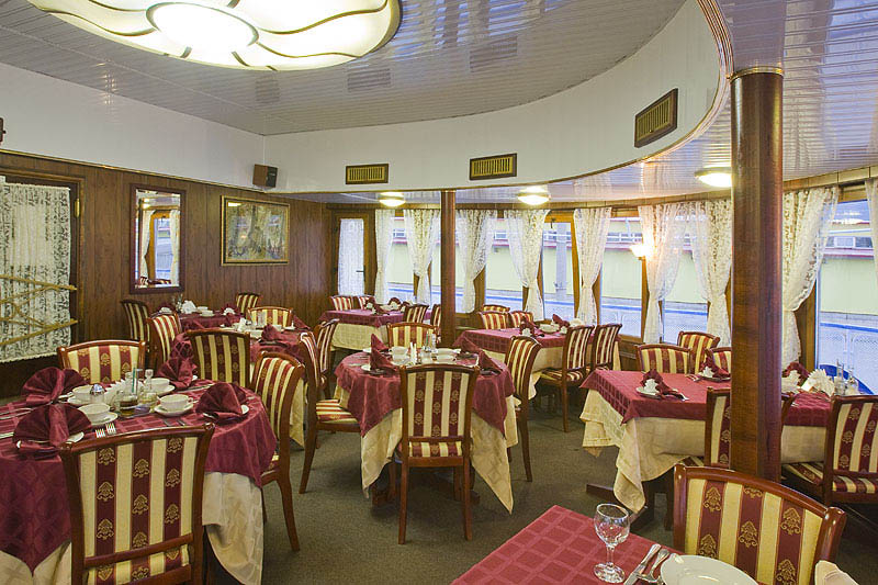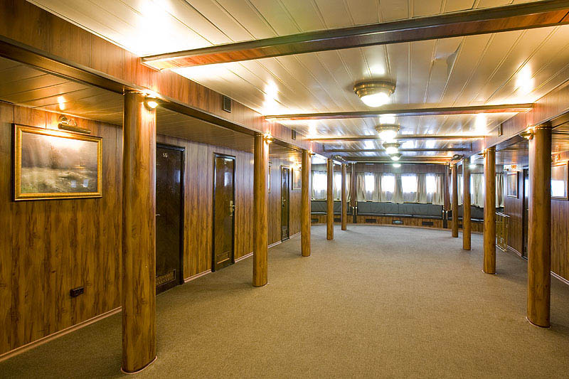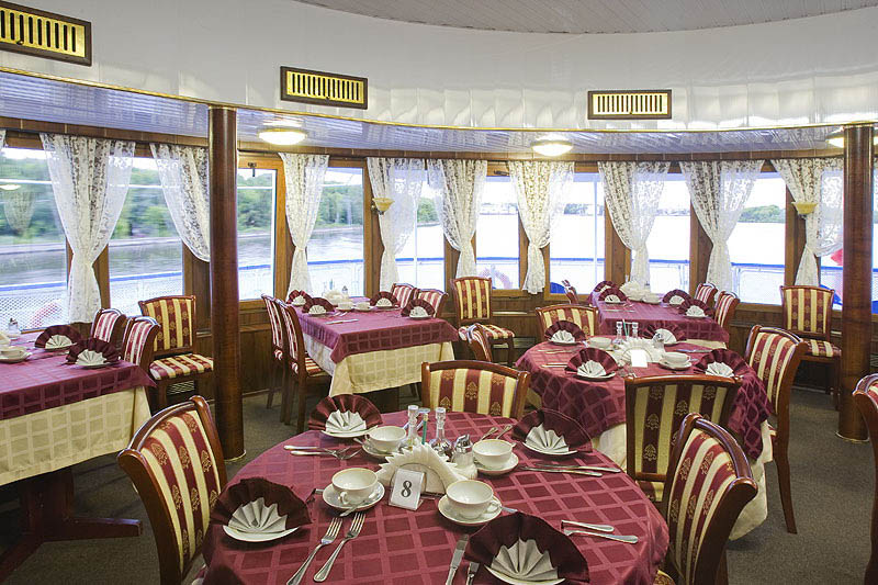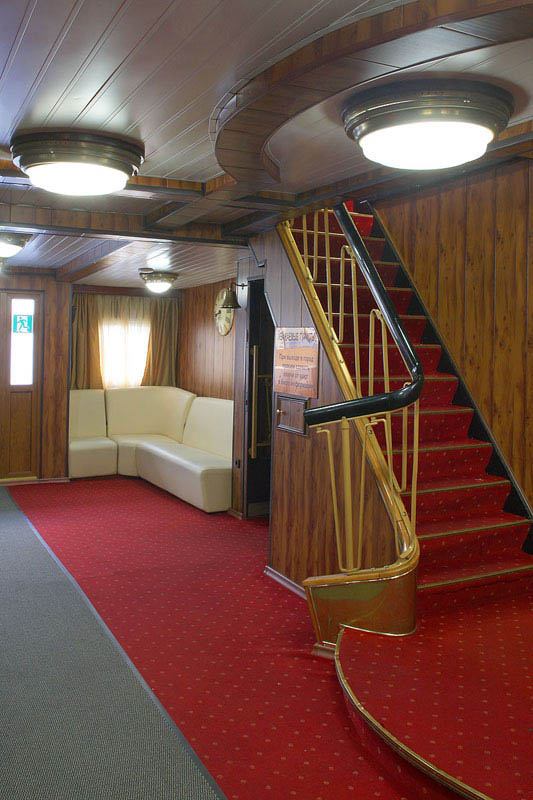 Для размещения туристов предусмотрены 1, 2-х и 4-х местные каюты, расположенные на средней, главной и нижней палубах. Все каюты оснащены санблоками, кондиционерами, холодильниками, радиоточками и розетками 220V. На теплоходе к услугам туриста имеется музыкальный, читальный салоны, ресторан , бар, мед.пункт, гладильная комната, открытые бортовые веранды, солярий.