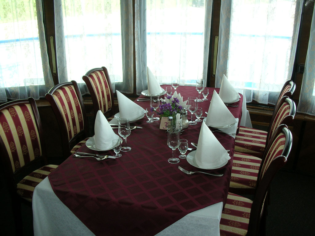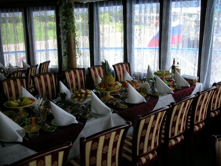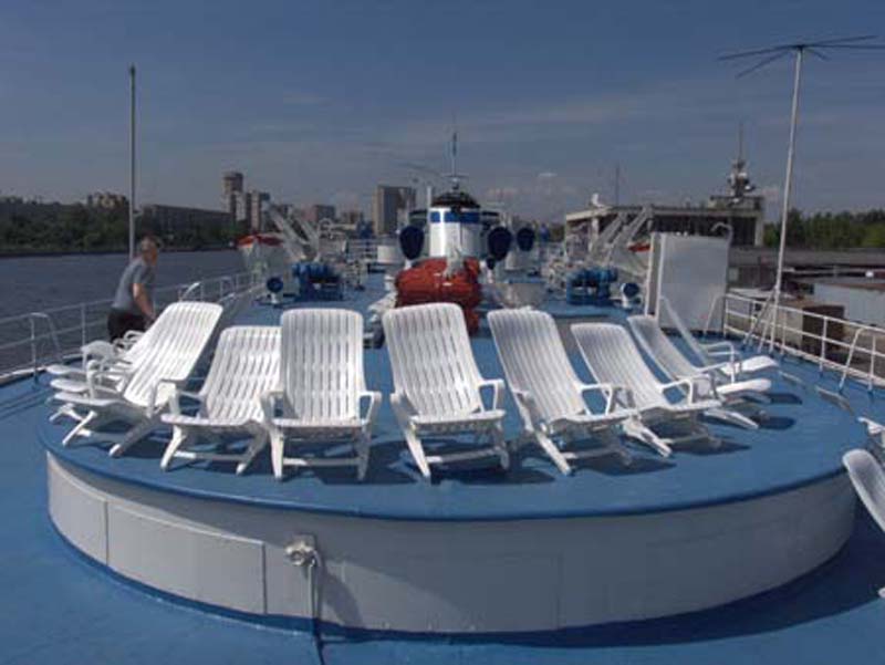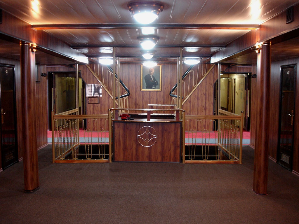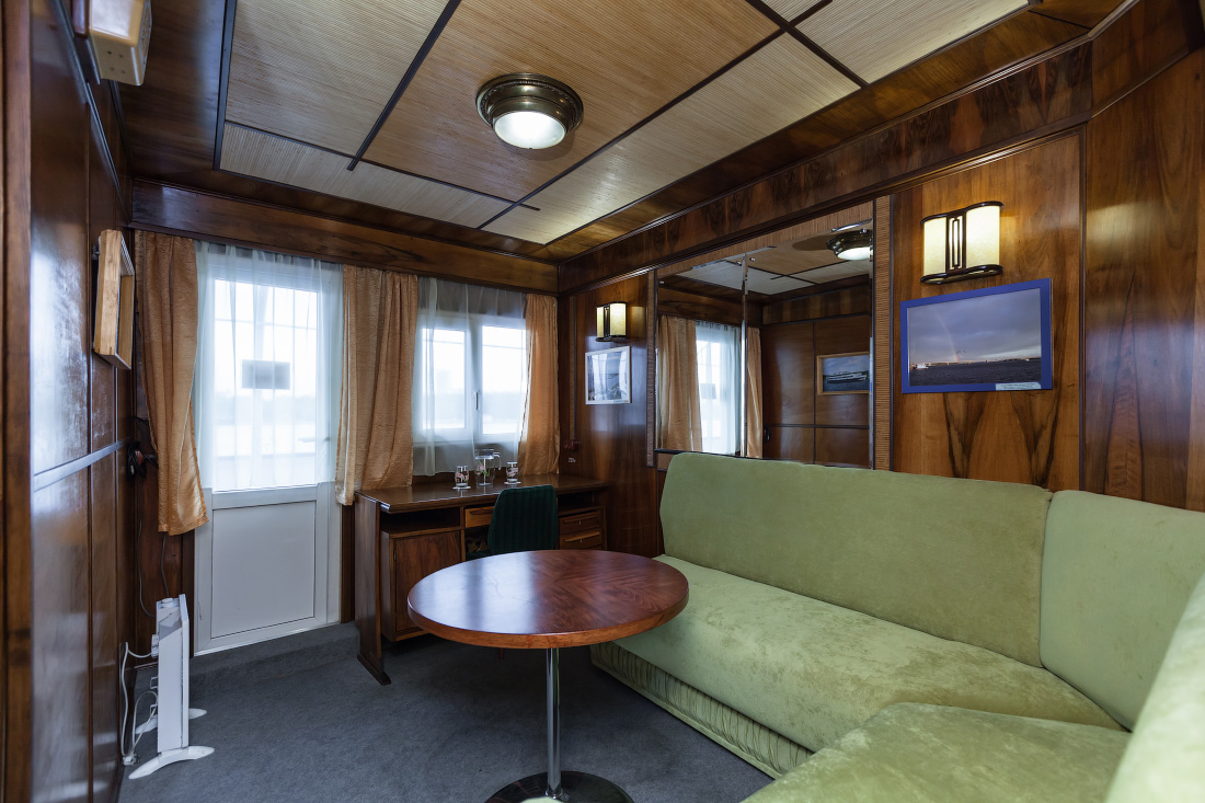 Для размещения туристов предусмотрены 1, 2-х и 4-х местные каюты, расположенные на средней, главной и нижней палубах. Все каюты оснащены санблоками, кондиционерами, холодильниками, радиоточками и розетками 220V. На теплоходе к услугам туриста имеется музыкальный, читальный салоны, ресторан , бар, мед.пункт, гладильная комната, открытые бортовые веранды, солярий.