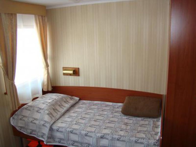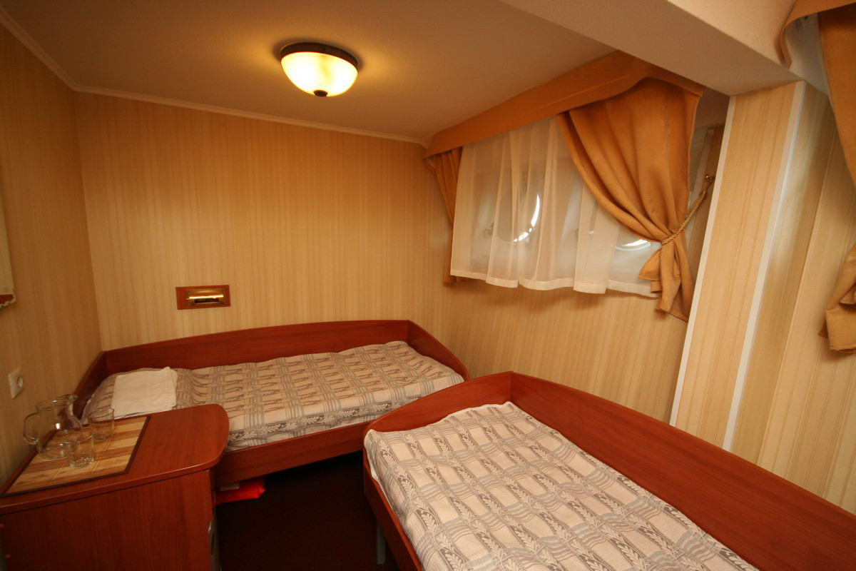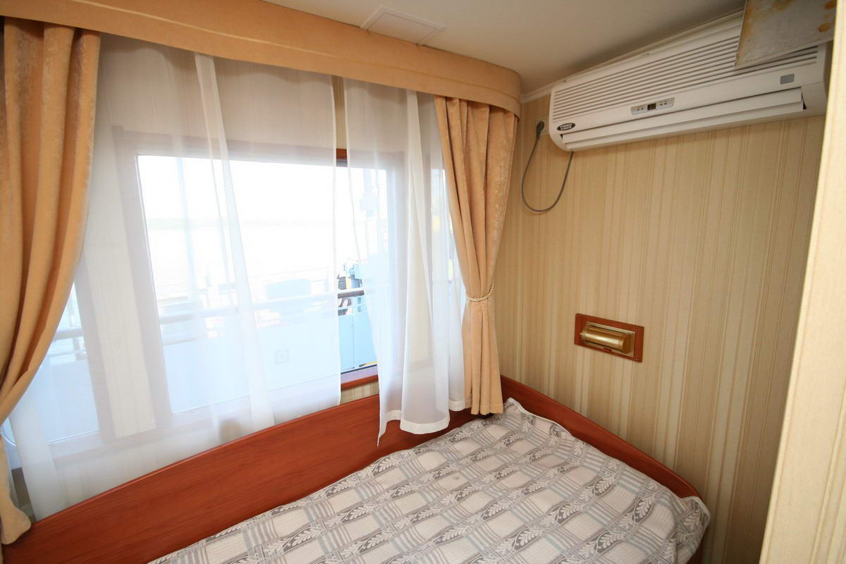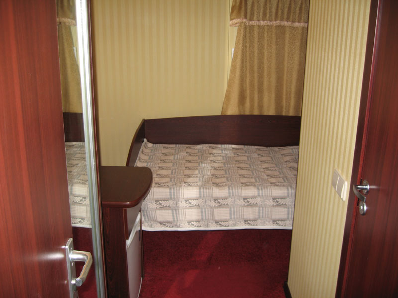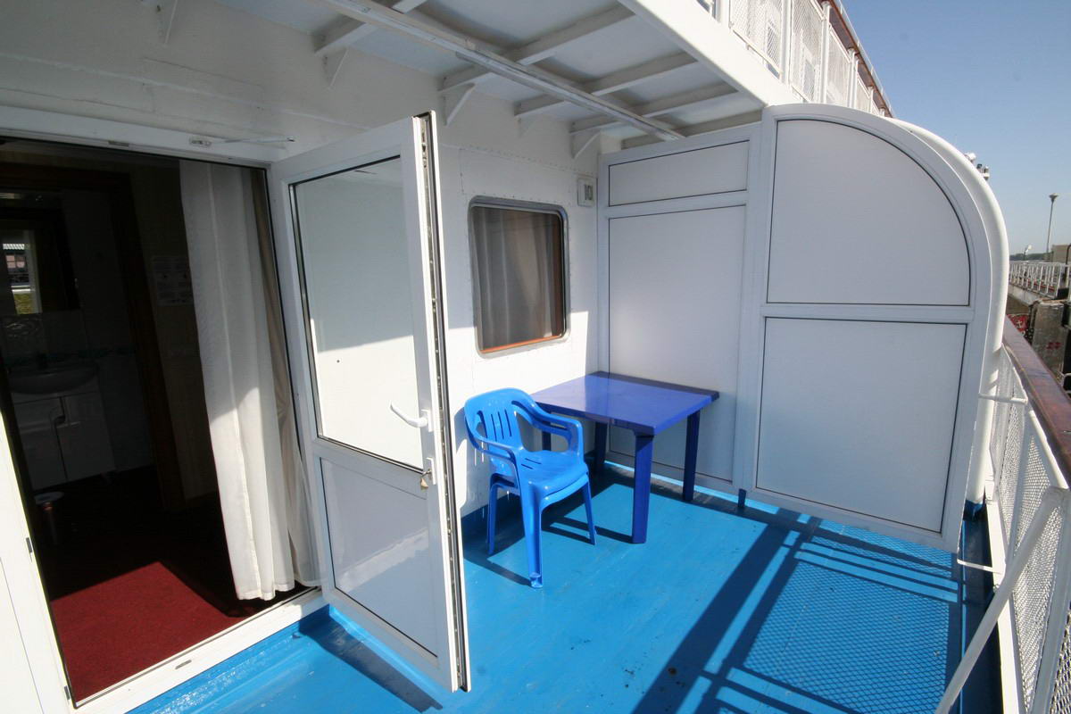 Двухместная одноярусная каюта со всеми удобствами. Расположение - на шлюпочной палубе (ограниченный вид). В каждой каюте - две кровати. Каюты имеют выход на балкон с палубной мебелью. Каюта № 414.