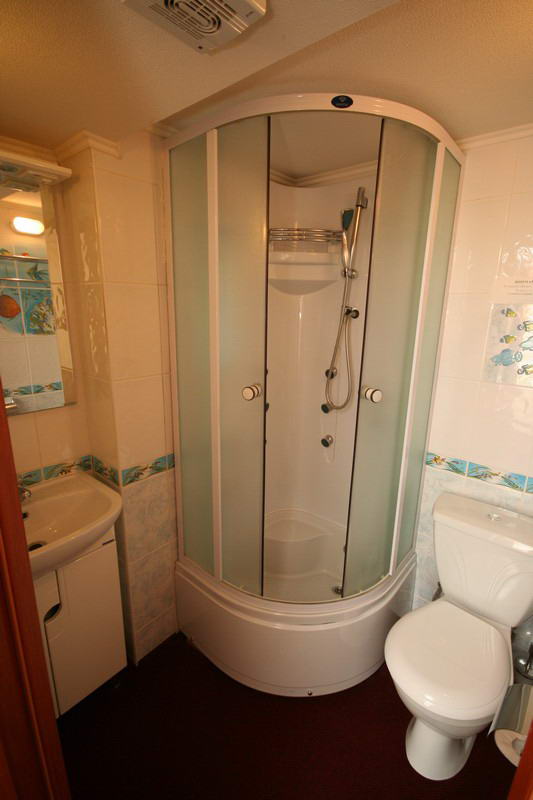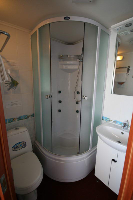 Все каюты имеют санузел, душ, умывальник, шкаф для одежды, централизованную систему кондиционирования, холодильник, радио.