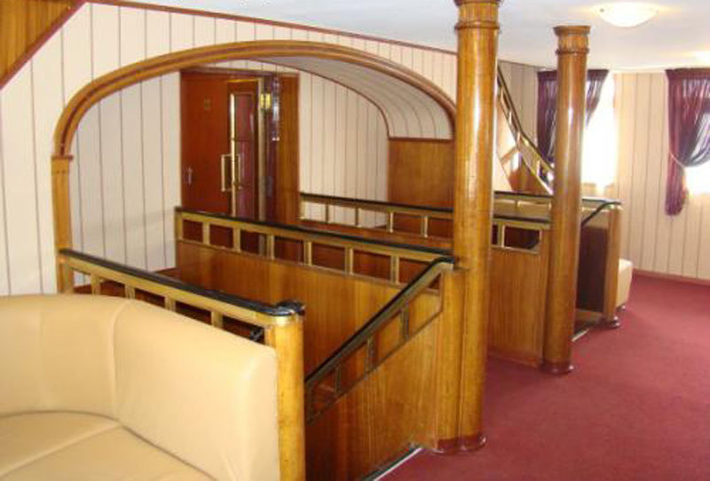 К вашим услугам: на верхней палубе - танцевальный зал и солярий; на шлюпочной палубе - бар и ресторан "Волга"; на средней палубе - ресторан "Кама" и читальный салон; на главной палубе - бар "Нева", гладильная комната, медицинский кабинет.