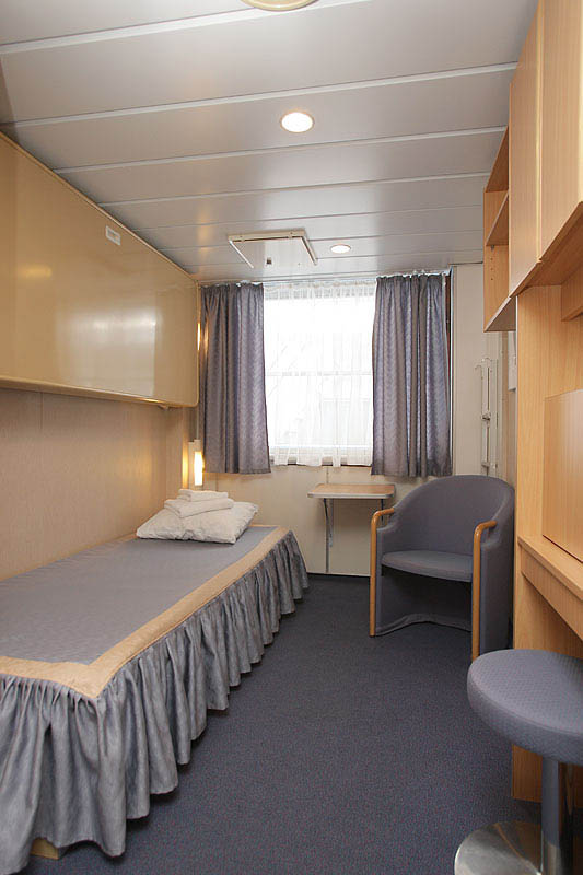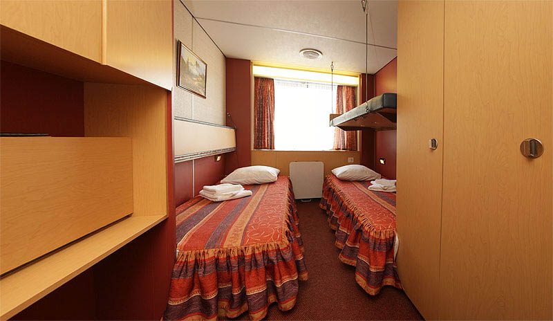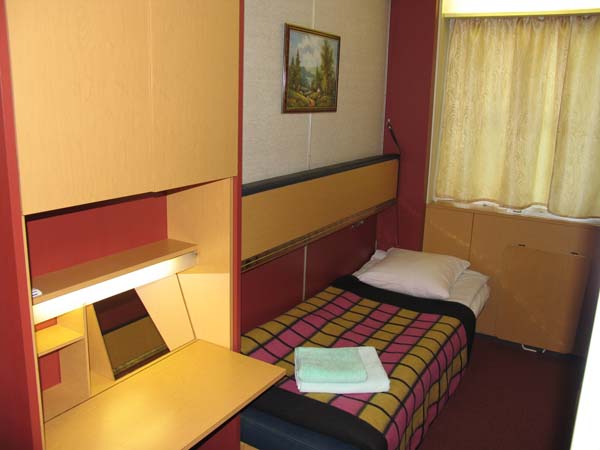 Двухместная одноярусная каюта на главной палубе. В каюте: санблок, кондиционер, холодильник, телевизор, внутрисудовая телефонная связь. Каюты №: 135-140, 142-147, 154-169.