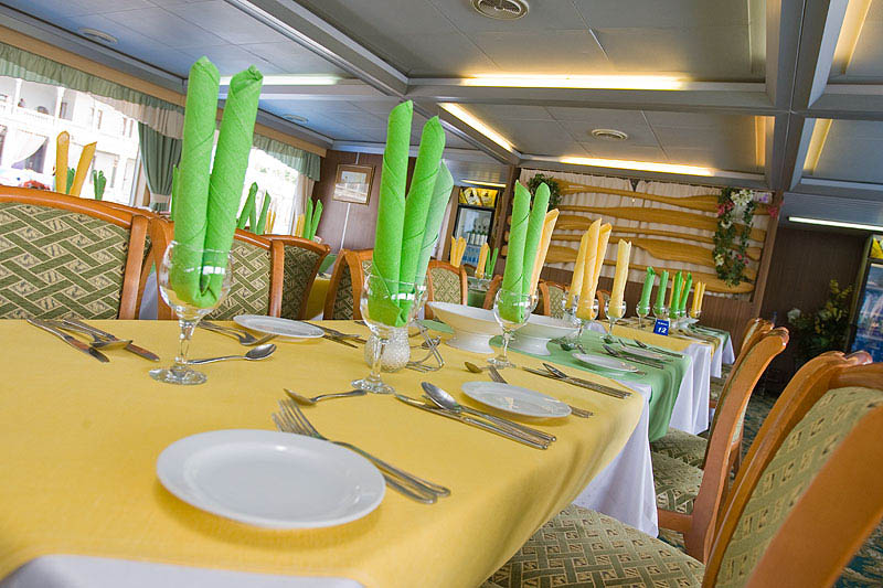 К услугам туристов: ресторан, бар с танцполом на шлюпочной палубе, панорама-бар на средней палубе, музыкальный салон, телевизоры в баре и салоне, гладильная комната, сувенирный киоск, конференц-зал на 130 посадочных мест, открытые бортовые веранды, ежедневная уборка каюты, туалетные принадлежности.
