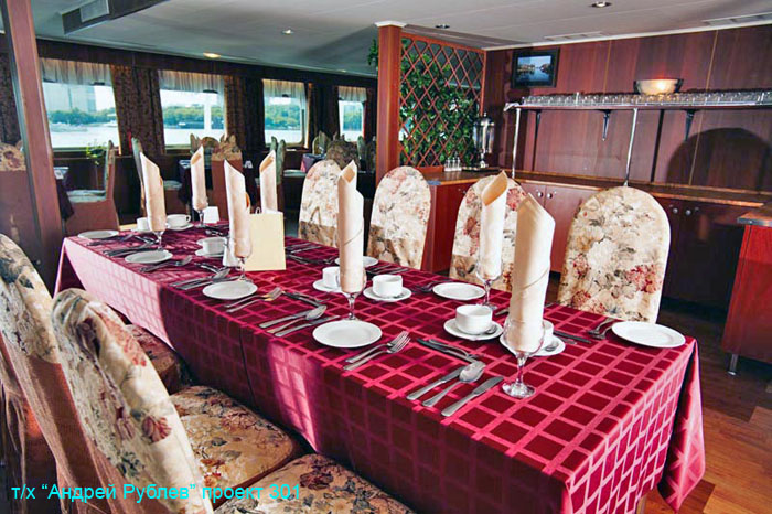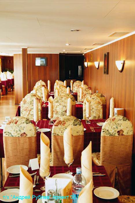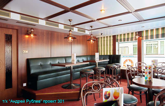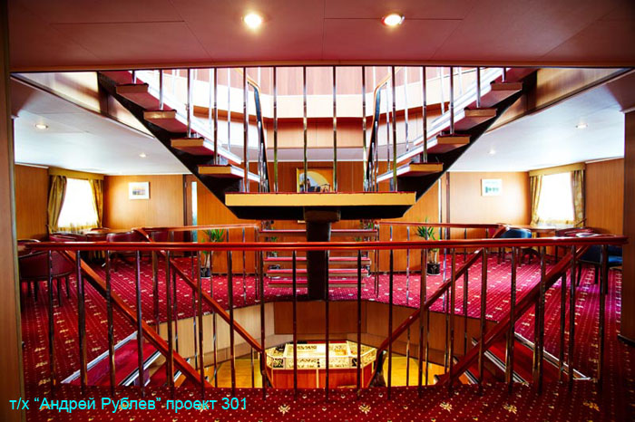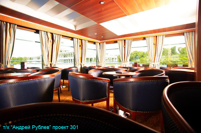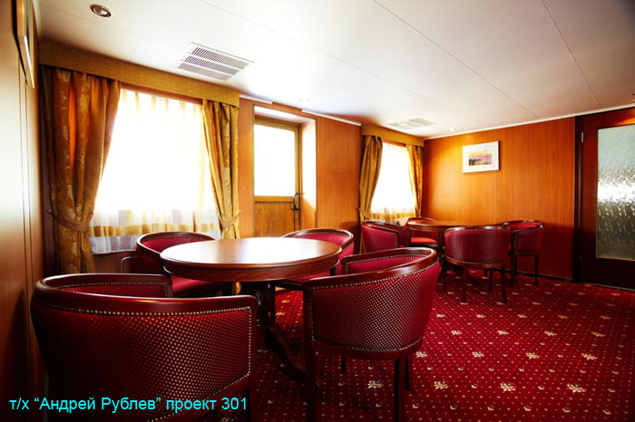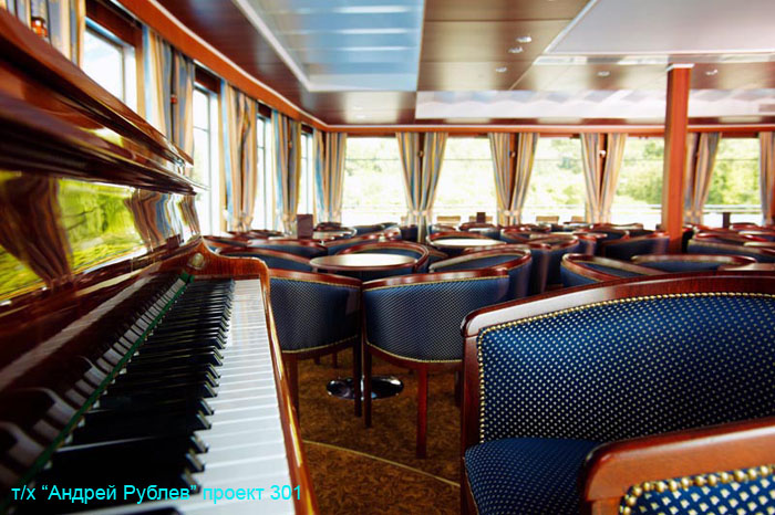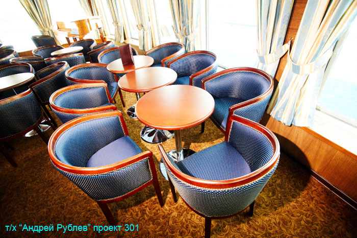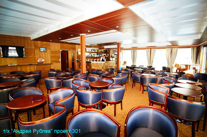 К услугам пассажиров: 2 ресторана, бар с танцевальным залом, панорама-бар, читальный и музыкальный салоны, конференц-зал, солярий на солнечной палубе, открытые бортовые веранды.