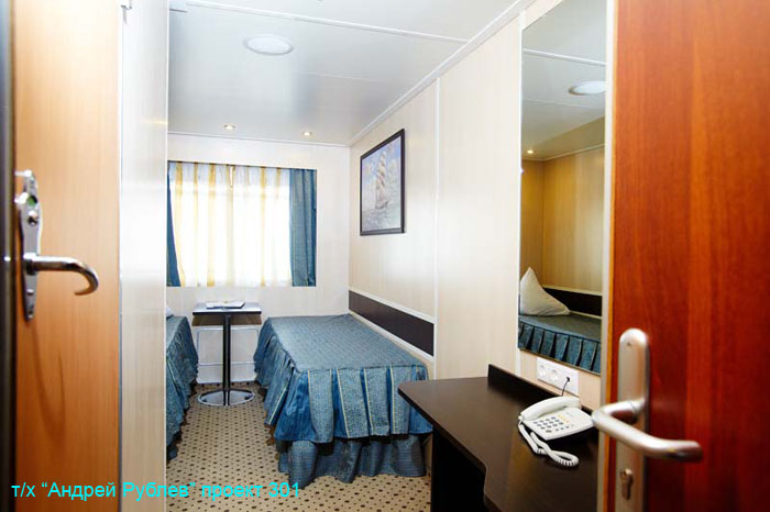 Двухместная каюта увеличенной площади, расположенная в носовой части средней палубы. В каюте имеется душевая кабина, двуспальная кровать (или две односпальных по желанию клиента), телевизор, кондиционер, холодильник, электророзетка 220В, внутренняя телефонная связь, ROOM-сервис. В каютах № 351-356 возможно разместить дополнительное третье детское место (раскладушку). Каюты №: 349-356.