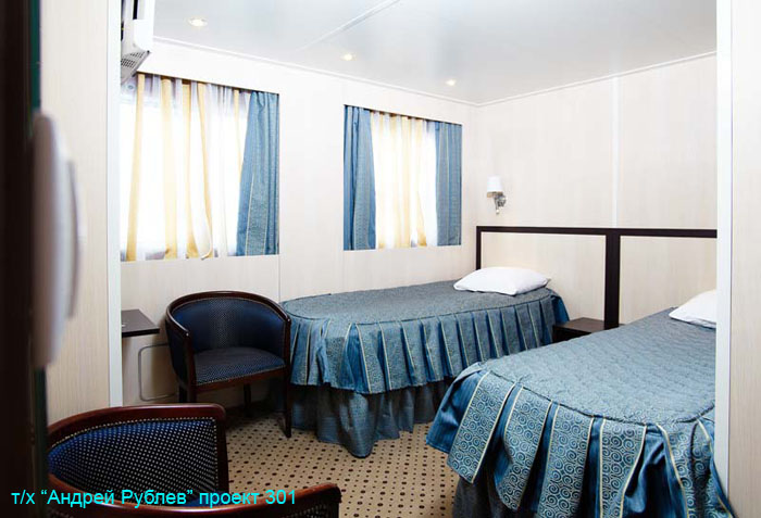 Двухместная каюта увеличенной площади, расположенная в кормовой части средней палубы. В каюте имеется душевая кабина, двуспальная кровать (или две односпальных по желанию клиента), телевизор, кондиционер, холодильник, электророзетка 220В, внутренняя телефонная связь, ROOM-сервис. Возможно разместить дополнительное третье детское место (раскладушку). Каюты №: 301-308.