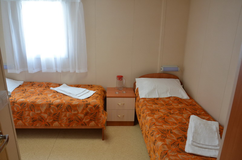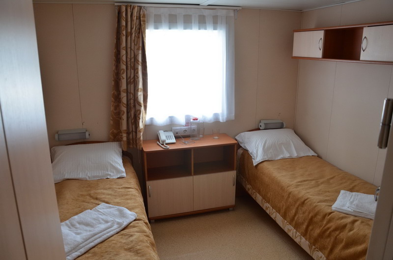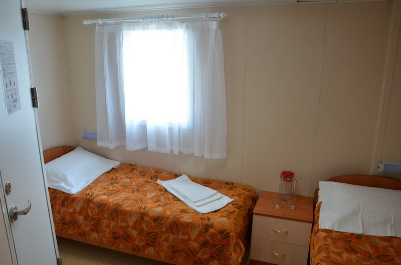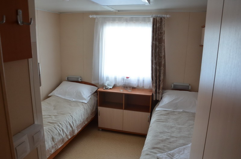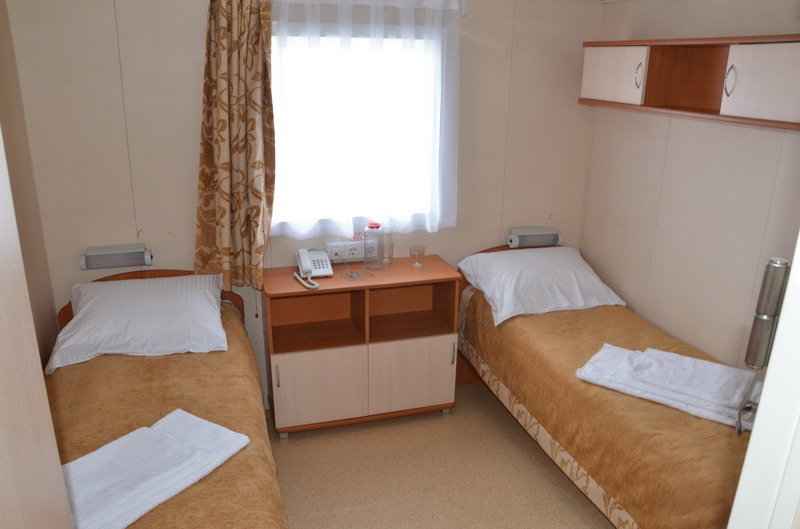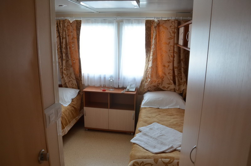 Двухместная одноярусная каюта на шлюпочной палубе. В каюте: две кровати, санузел с душем, центральное кондиционирование "Фанкойл", тумба прикроватная, шкаф, телевизор, телефон, окно (не открывается), сейф, холодильник, плед. Каюта площадью 8 кв.м. Каюты №: 11-16.