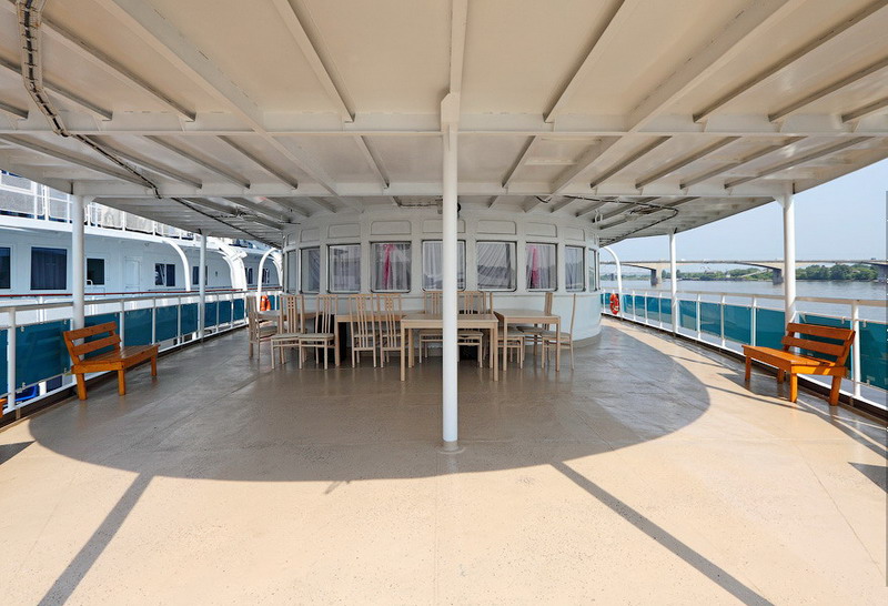 Двухкомнатная каюта на верхней палубе, площадью 19 кв.м. Двуспальная кровать, раскладной диван, душевая кабина, санузел, split-система кондиционирования, холодильник, телевизор, телефон, сейф, халат, тапочки, плед. Окно открывается. Размещение: Двухместное, возможность размещения одного дополнительного места.