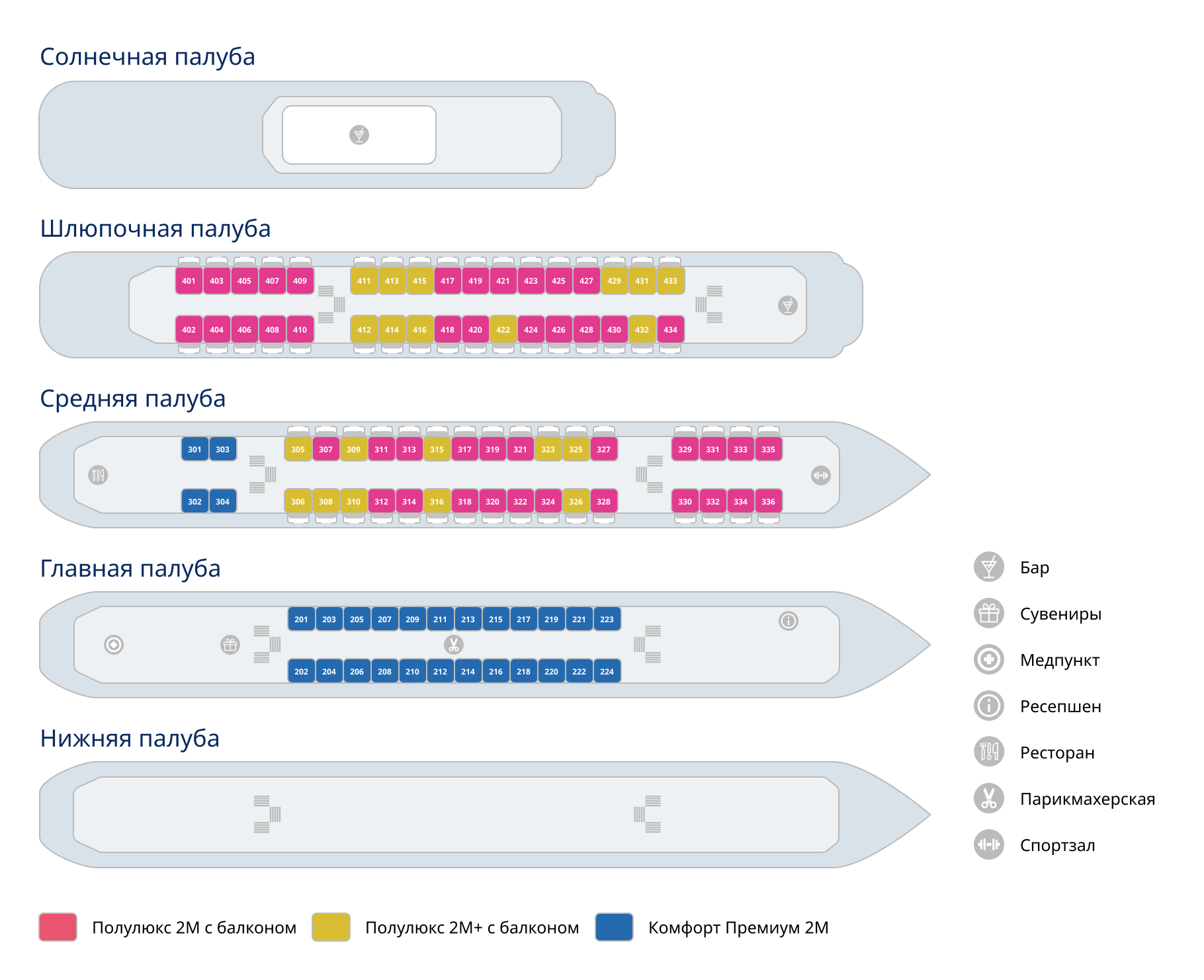 - При покупке круиза в течение 5 дней с момена бронирования скидка 15% на все категории кают!