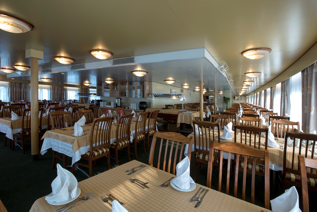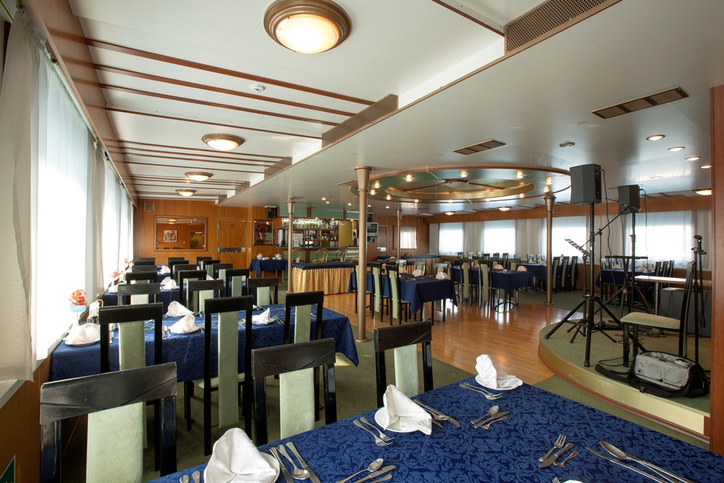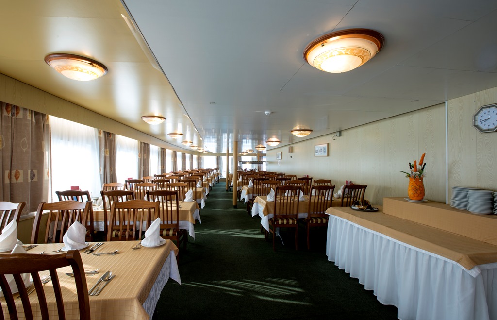 • обед — буфет («шведский стол») фиксированная рассадка, в отдельные дни круиза возможна замена на обед с выбором блюд;