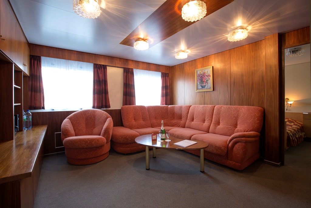Двухкомнатная каюта с удобствами, расположенная на шлюпочной палубе, рассчитанная на размещение до трех человек