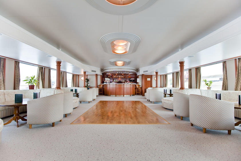 На борту теплохода: просторный вестибюль со стойкой рецепции, два ресторана, уютный танцевальный бар, бар с панорамным видом, зона солярия с удобными стульями для принятия солнечных ванн, салон красоты, сауна и библиотека. Все каюты теплоходы являются внешними и оборудованы открывающимися панорамными окнами, системой индивидуального климат-контроля, мини-холодильником в каютах категорий «Полулюкс» и «Люкс», телевизором, сейфом и встроенным платяным шкафом.