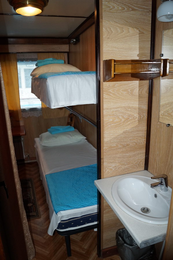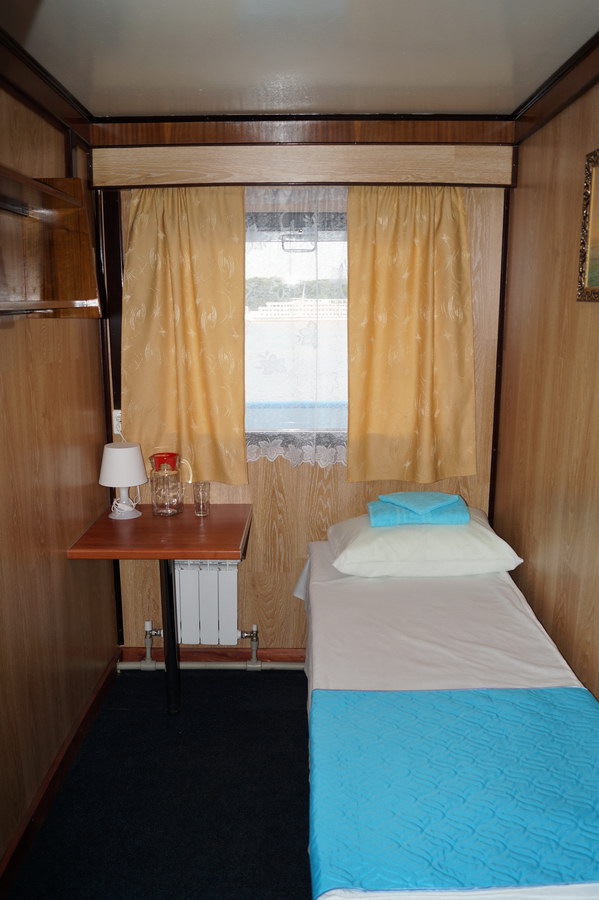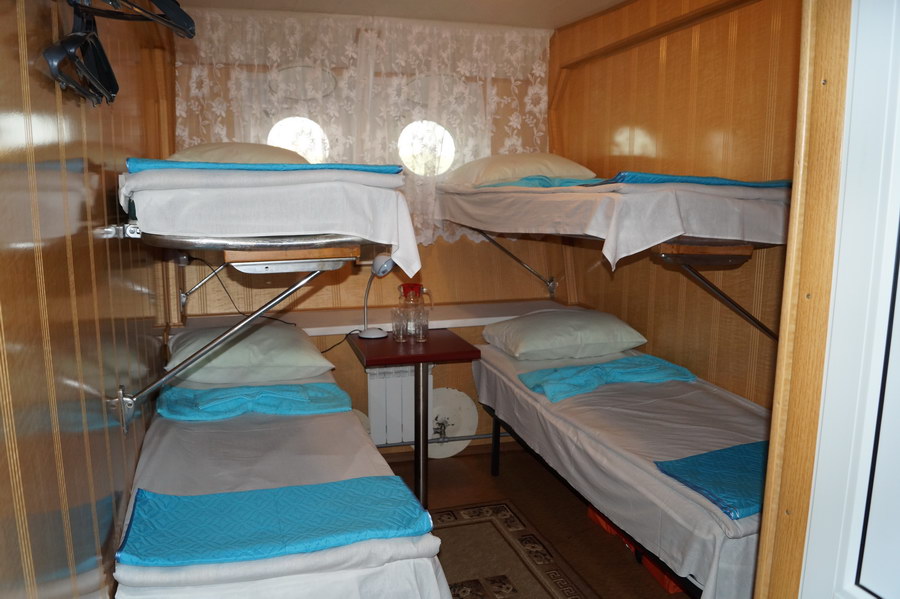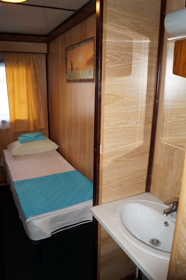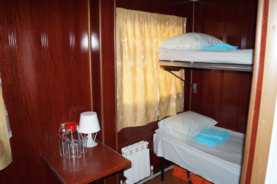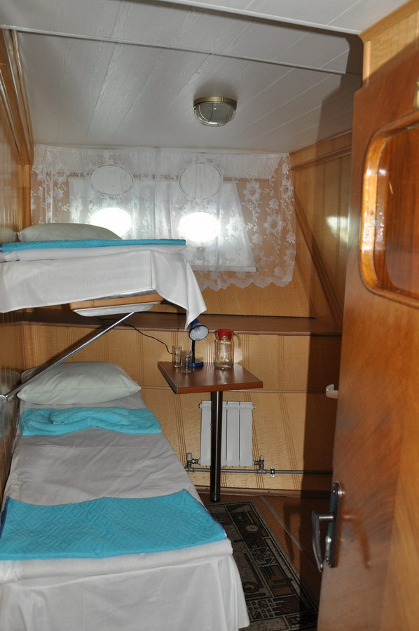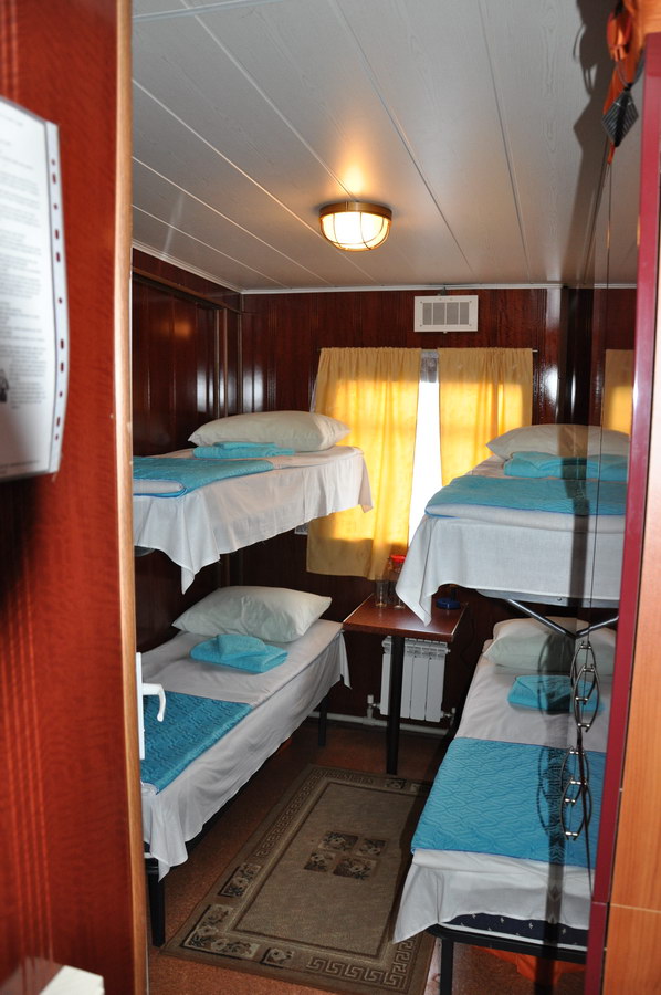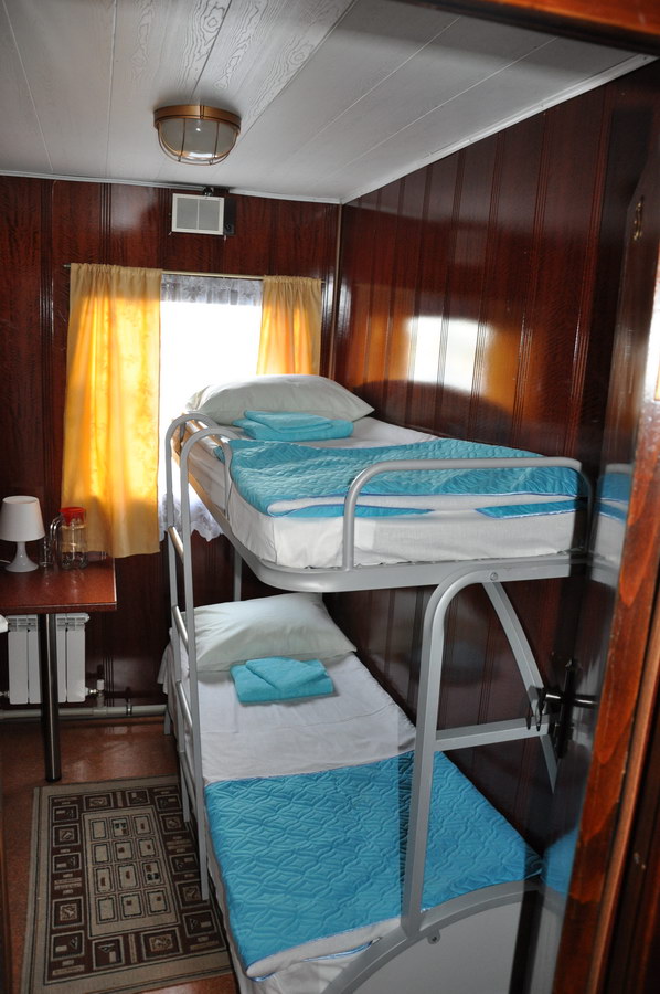 Для Вашего размещения предусмотрены одно-, двух-, трех- и четырехместные каюты,а также каюты повышенной комфортности, расположенные на средней, главной и нижней палубах. Во всех каютах электророзетки 220В. На теплоходе к Вашим услугам имеется ресторан, бар, мед.пункт, Wi-Fi зона, открытые прогулочные палубы.