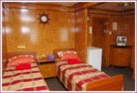 Двухместная двухъярусная каюта со всеми удобствами, расположенная на средней палубе. В каюте: две двухъярусные кровати, ванная комната (раковина, душ, туалет), шкаф для одежды, столик, кондиционер, радио, зеркало, холодильник, обзорное окно.