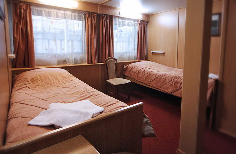 Двухместная двухъярусная каюта со всеми удобствами, на шлюпочной палубе. В каюте: два спальных места (одно над другим), шкаф для одежды, зеркало, радио, душ, санузел, кондиционер, обзорное окно, электророзетка на 220V. Каюты №: 31, 33, 47-52.