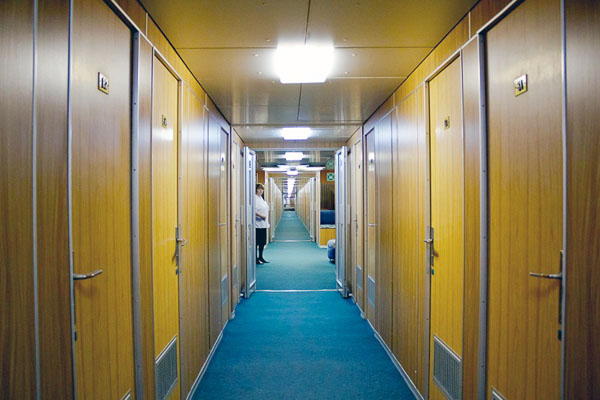Двухместная одноярусная каюта со всеми удобствами, на средней палубе. В каюте: два спальных места, шкаф для одежды, радио, душ, санузел, кондиционер, зеркало, обзорное окно, электророзетка на 220V. Каюты №: 89-107.